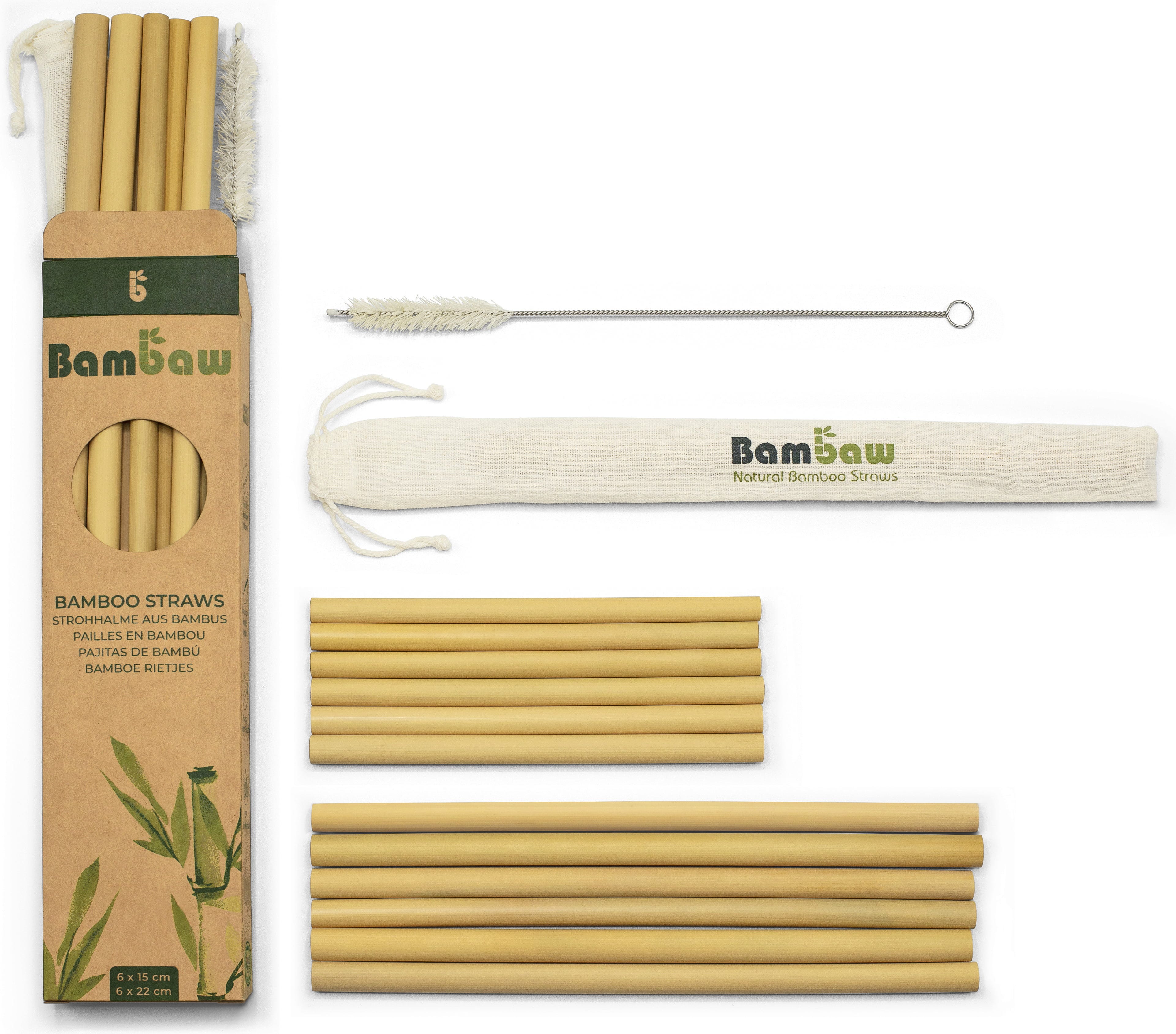 Bambaw Bambus Trinkhalme Box, 12x 14 cm & 22 cm (12 Stück)