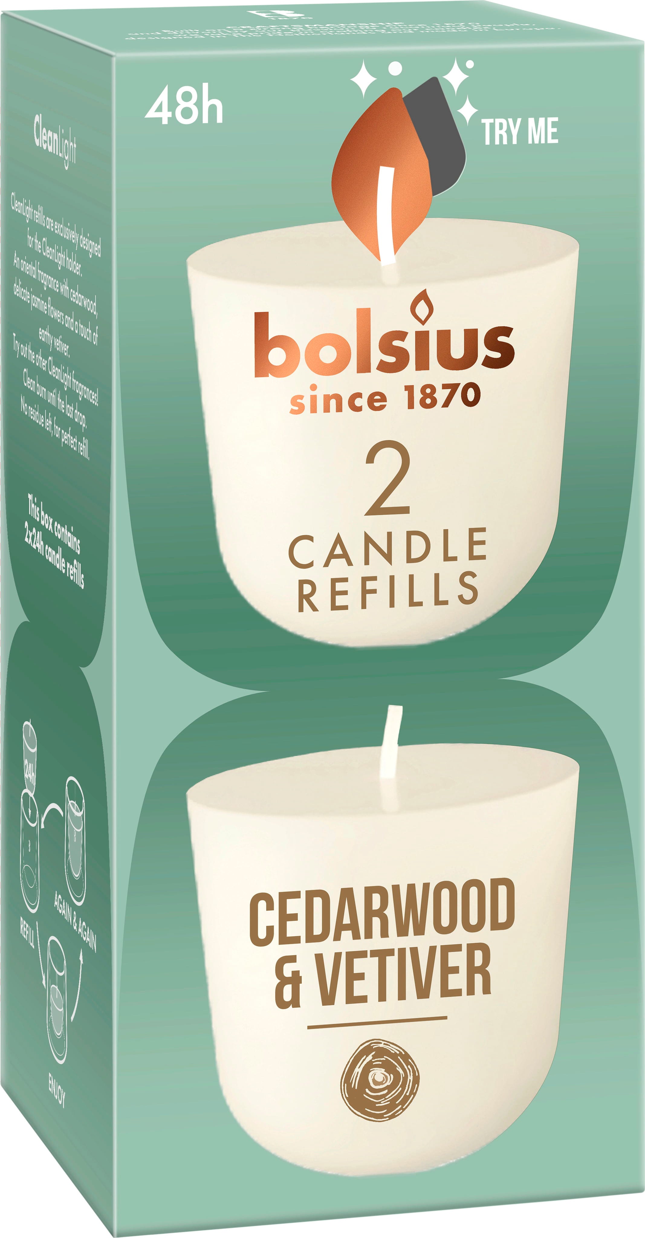 bolsius CleanLight Nachfüllkerzen ScentMax 2er Pack, Zedernholz & Vetiver