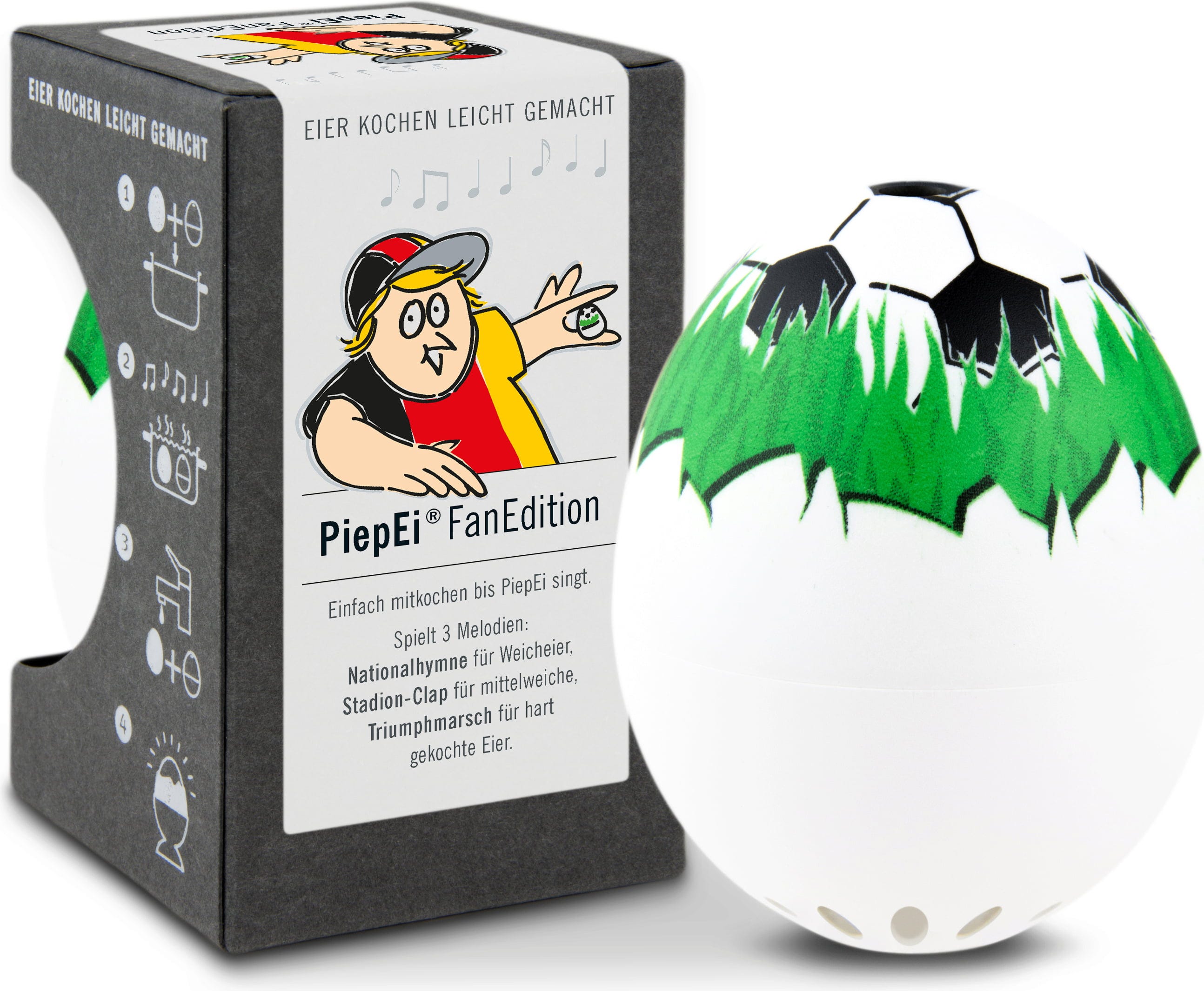 Man kennt es – gekochte Eier sind eine Wissenschaft für sich: Mal ist das Ei zu hart, mal ist das Ei zu weich. DasFanEdition PiepEi von Brainstream ist der ideale Assistent zu deinem perfekt gekochten Ei.