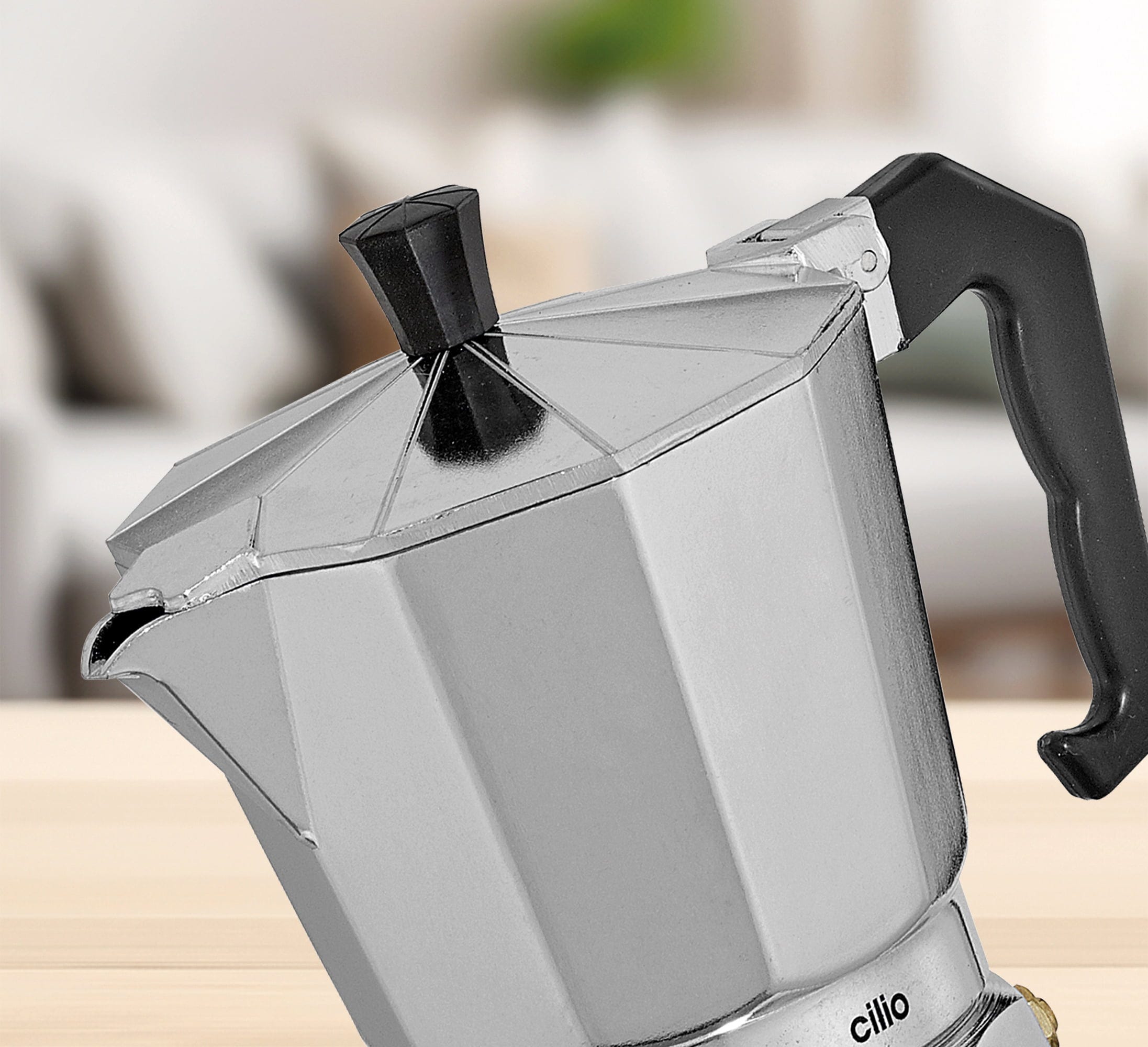 Genieße italienische Kaffeekultur ohne Kompromisse auf deinem modernen Herd. Der cilio Espressokocher CLASSICO Induktion verbindet die beliebte, traditionelle Optik einer Moka-Kanne mit der technologischen Innovation eines magnetischen Bodens. Während das Wasser im Edelstahl-Kessel schnell erhitzt wird, steigt der aromatische Espresso in das klassische Aluminium-Oberteil und entfaltet dort sein volles Bouquet. Mit seinem wärmeisolierten Griff lässt er sich sicher führen, sodass du dein kleines Stück Italien jeden Tag entspannt zelebrieren kannst.