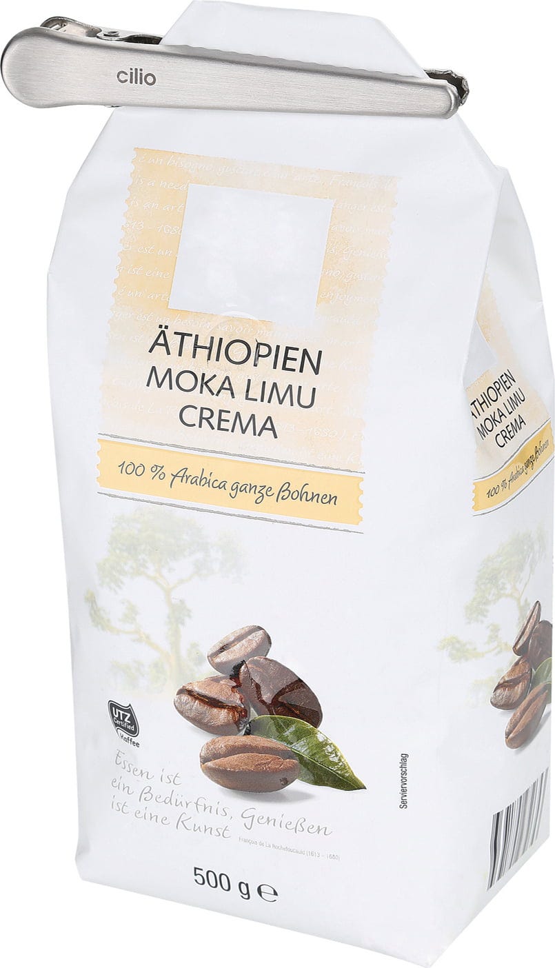 Schütze Kaffeebohnen oder Kaffeepulver stilvoll vor Feuchtigkeit und Aromaverlust. Mit dem cilio Kaffeetütenklammer 2er-Set setzt du auf ein funktionales Accessoire, das durch sein minimalistisches Design in jede moderne Küche passt. Die robuste Verarbeitung aus Edelstahl macht diese Klammern zu einer nachhaltigen Alternative zu instabilen Kunststoff-Clips.
