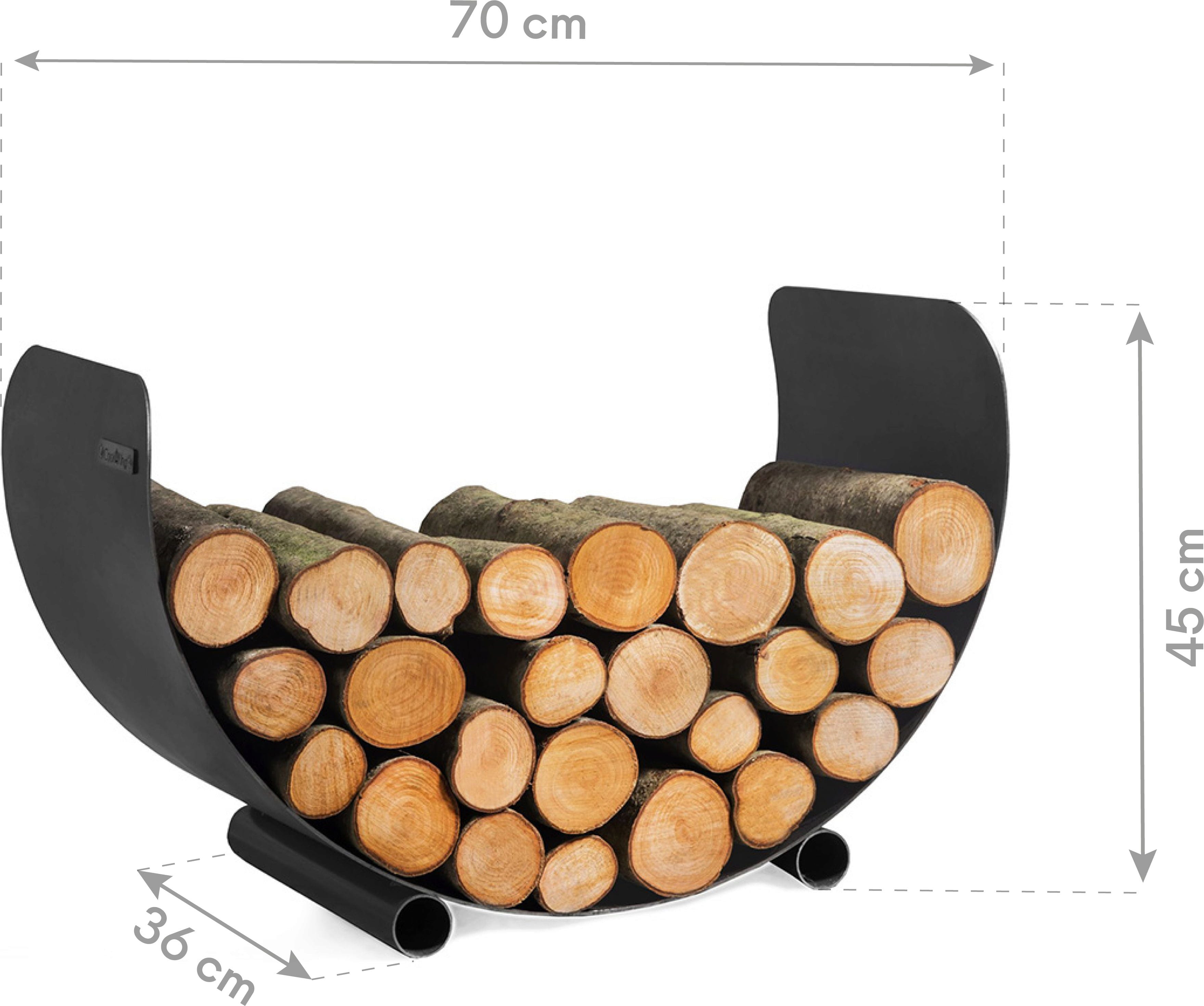 Dank der großzügigen Tiefe und der stabilen Konstruktion lassen sich deine Holzvorräte mühelos und ordentlich stapeln, sodass du sie immer griffbereit hast, wenn die Flammen nach Nachschub verlangen. Der robuste Stahl trotzt dabei souverän den Elementen, was die Nutzung im Außenbereich problemlos möglich macht.