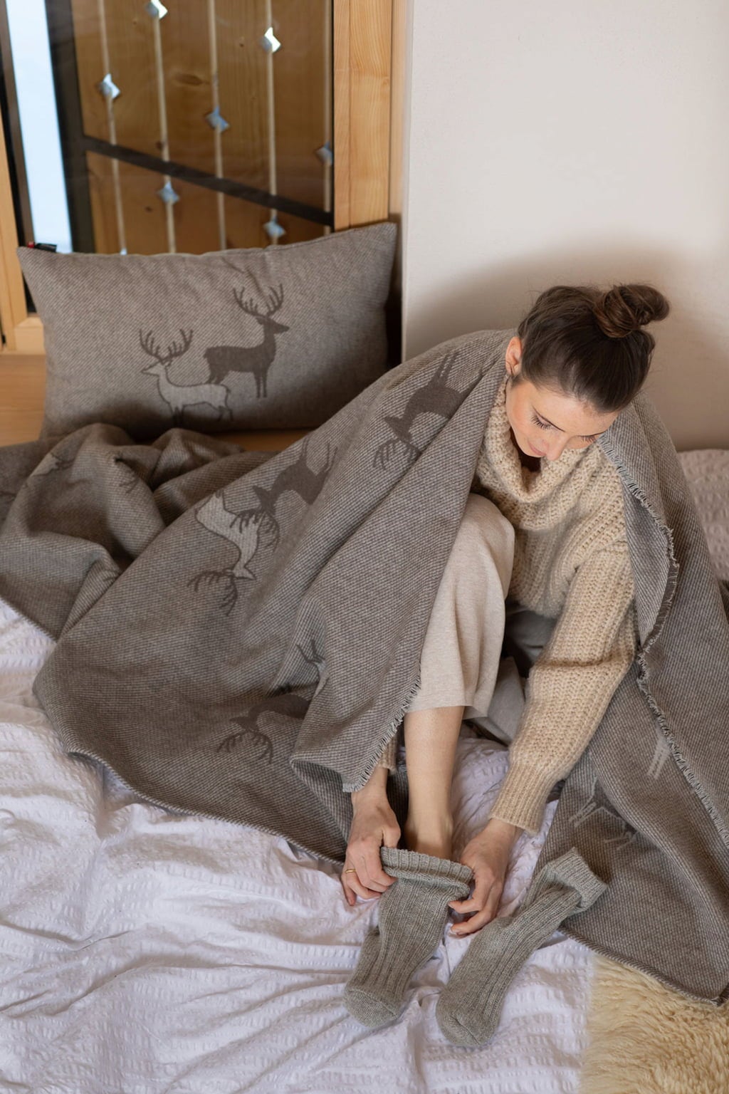 David Fussenegger LUCA Flanelldecke "Hirschpaare", braun