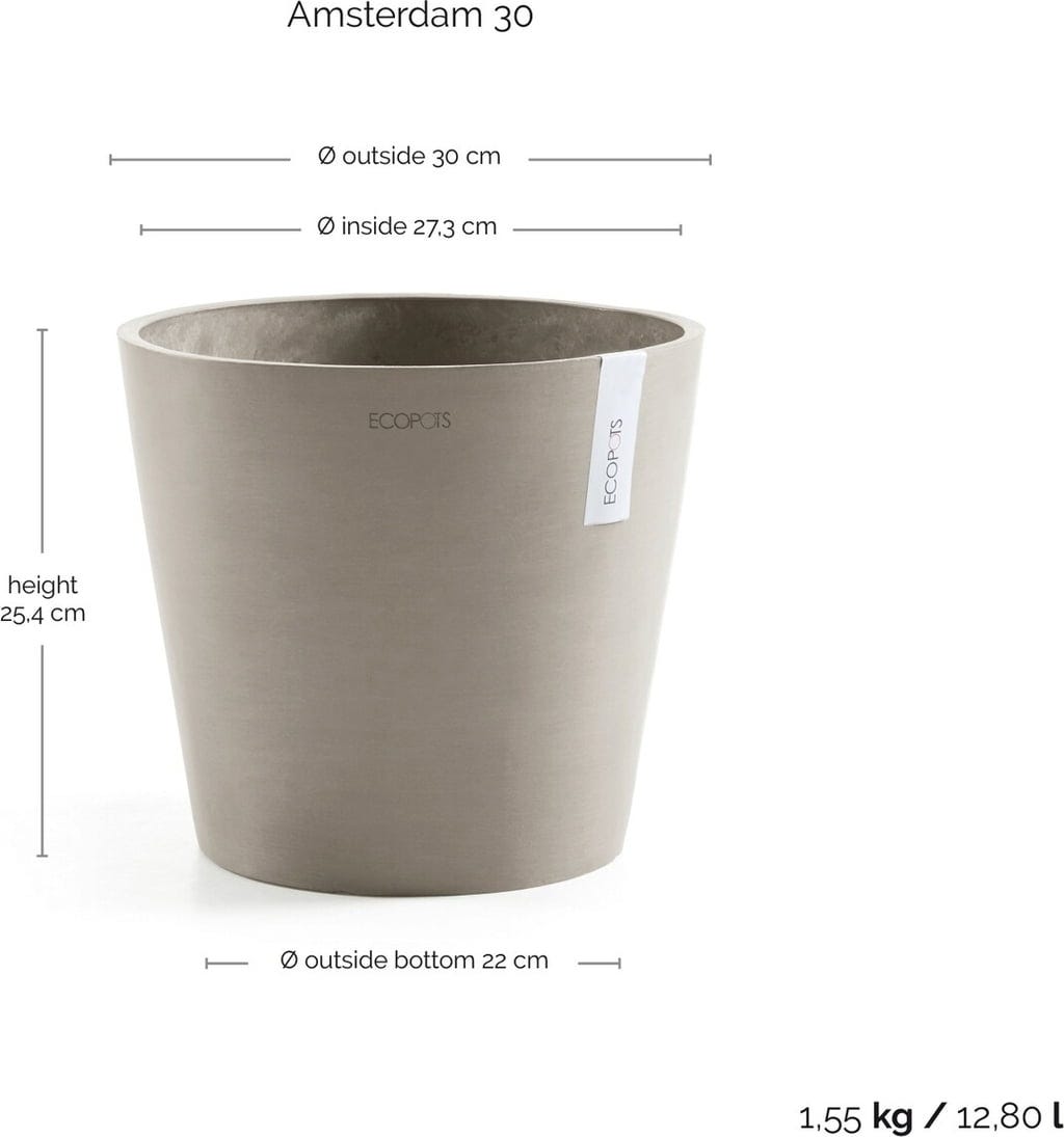 Ecopots Amsterdam Topf mit Wasserreservoir - taupe, Ø 30 cm
