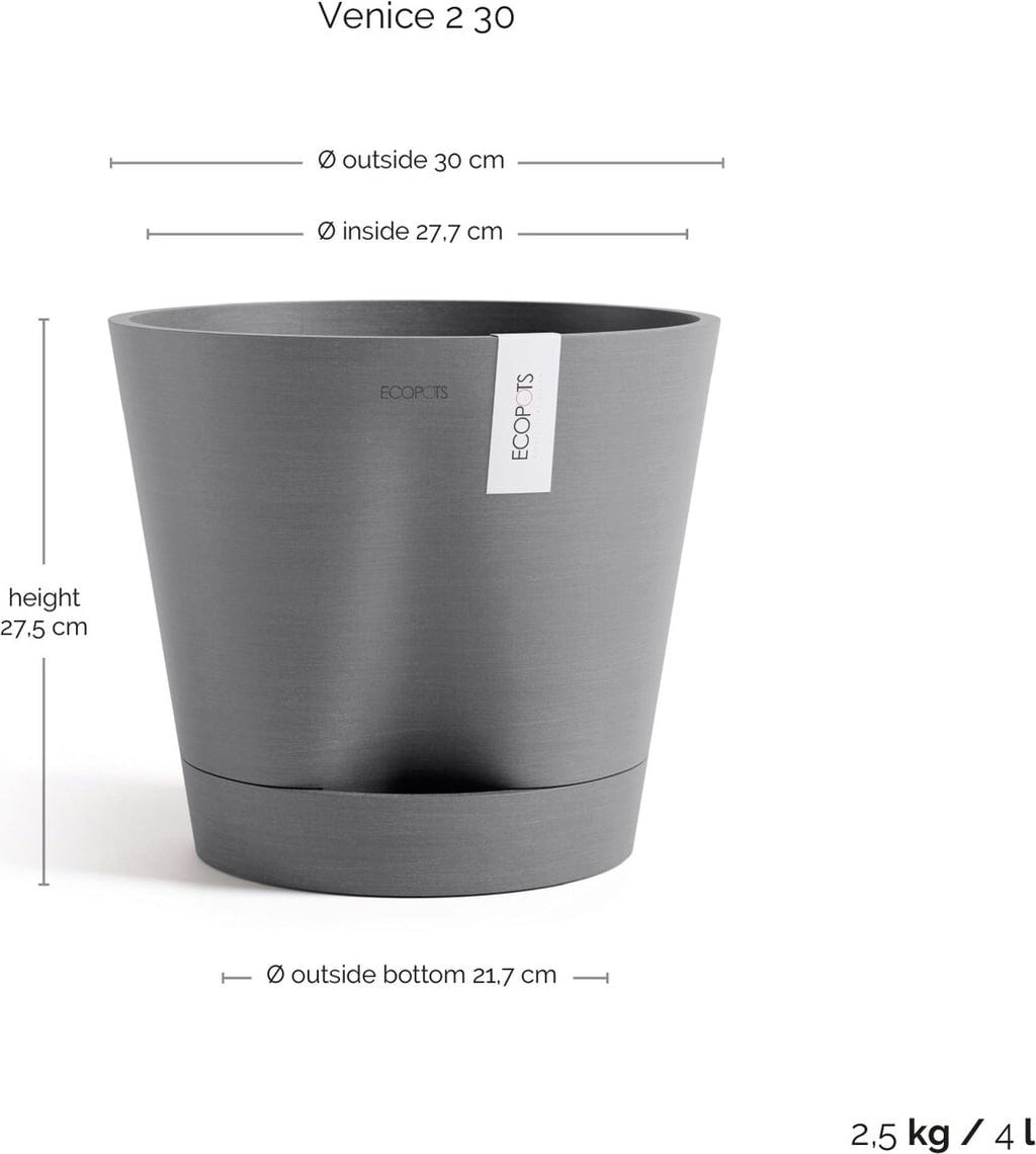 Ecopots Venice 2 Pflanztopf grau, Ø 30 cm, Höhe 26,3 cm