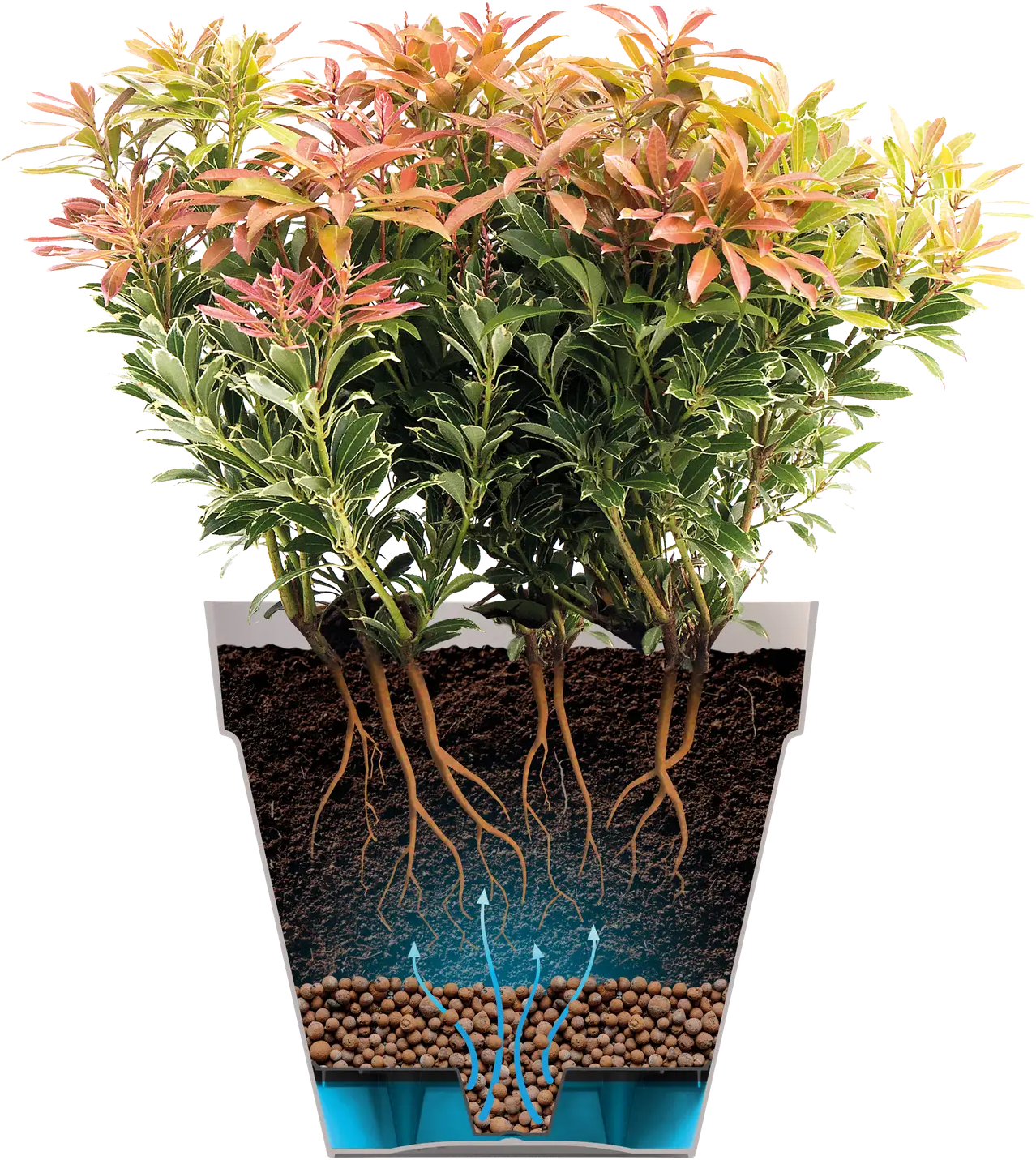 Dieser Topf ist mit seinen frischen Farben nicht nur ein Blickfang in jedem Garten und auf jeder Terrasse, er ist auch noch richtig clever entworfen. Das eingebaute Wasserreservoir sorgt nämlich dafür, dass Ihre Pflanzen immer genügend Wasser haben. Überschüssiges Wasser kann über ein spezielles Rohr ablaufen, sodass Ihre Pflanzen nicht im Wasser stehen. So müssen Sie sich keine Sorgen machen und nicht ständig daran denken, Ihre Pflanzen zu gießen.