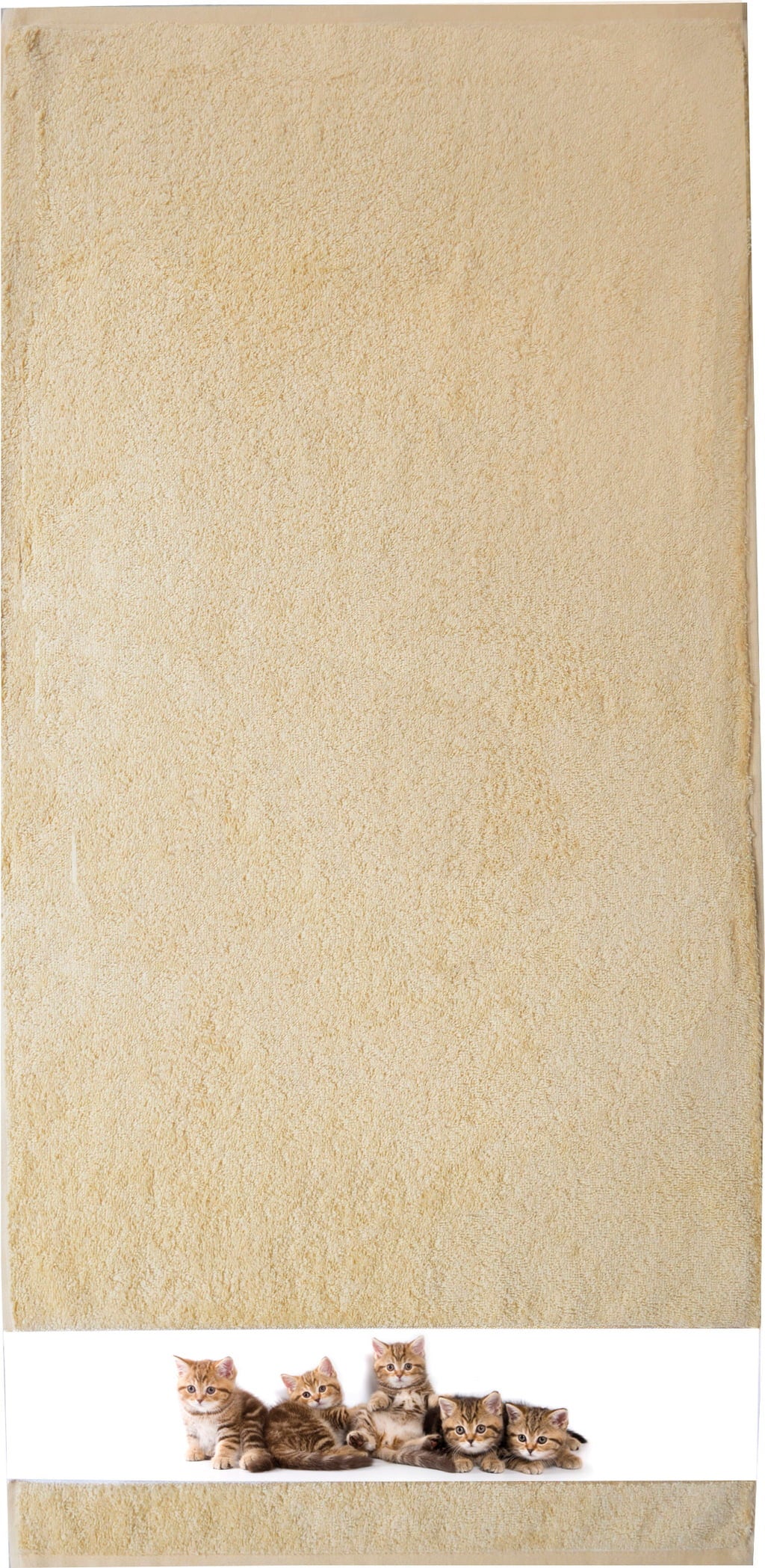 Framsohn Handtuch mit Druckborde "Katzen", Limone