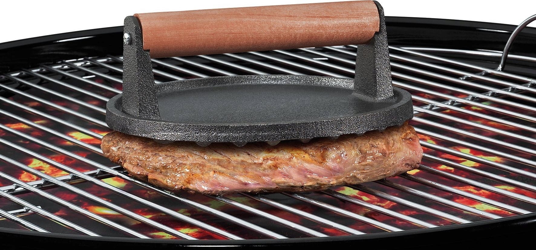 Perfekt für alle Grill- & Burgerfans. Der BBQ-Fleischbeschwerer sorgt für gleichmäßiges und schnelles Garen am Grill oder in der Pfanne. Selbst XXL-Filets lassen sich dank seines Gewichts von ca. 1,2 kg gleichmäßig braten.