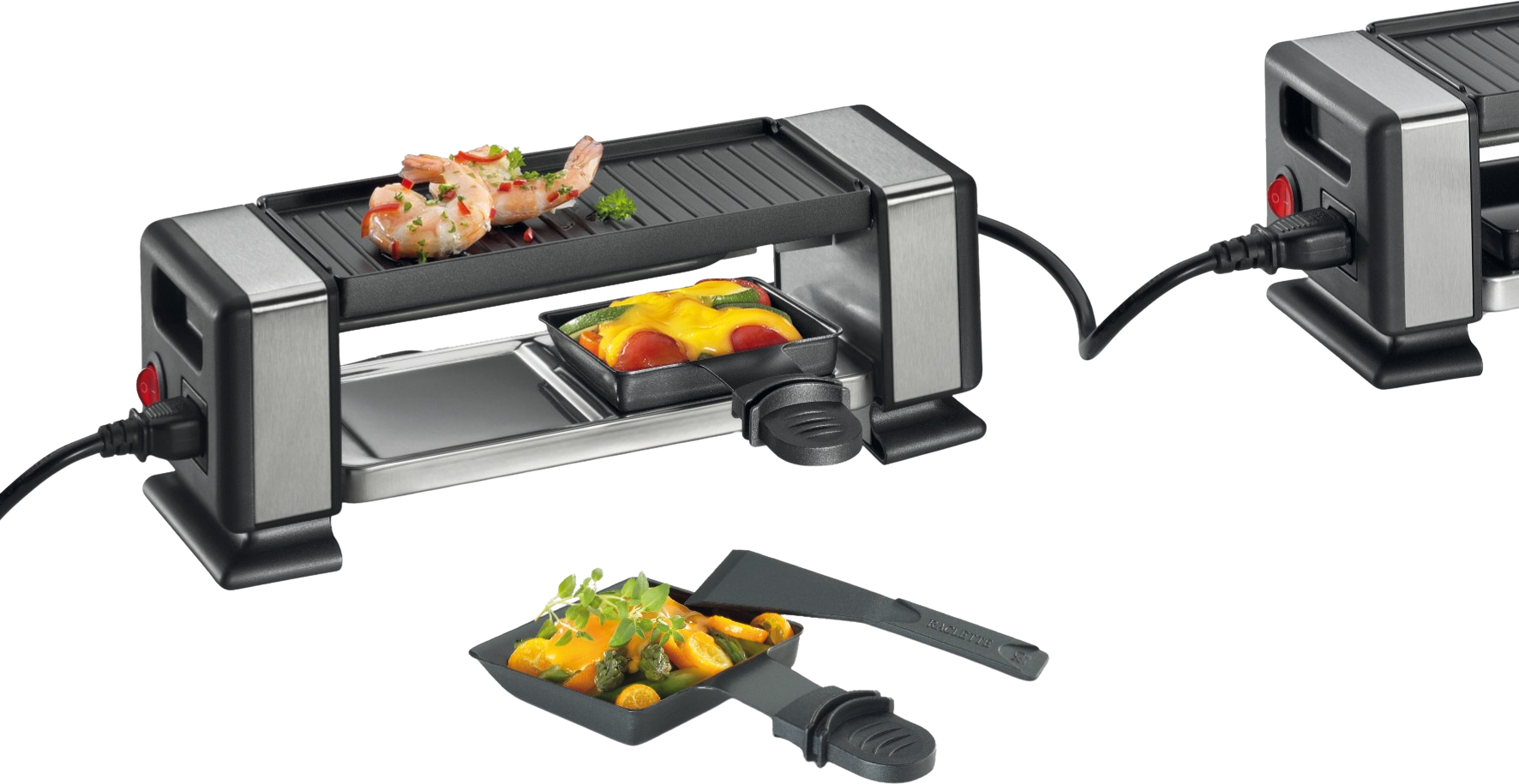 - Bis zu drei zusätzliche Raclettes