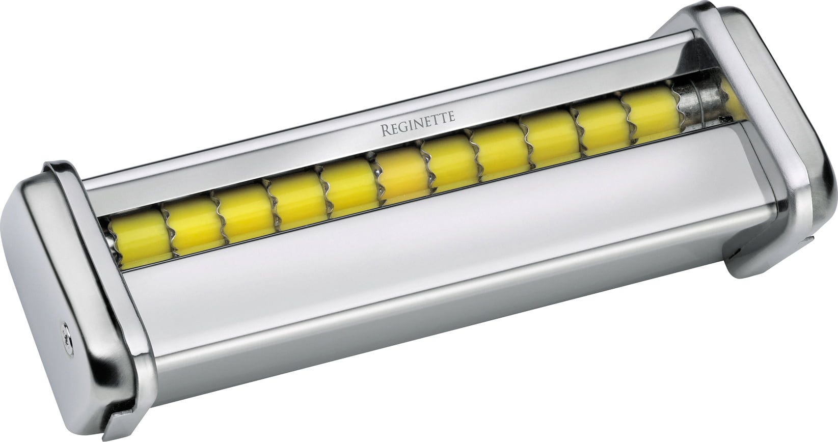 Reginette sind ein Klassiker der italienischen Küche und heißen nicht umsonst "kleine Prinzessinnen", denn an ihrem gezackten Rand haftet die Soße besonders gut. Mit dem praktischen Aufsatz für deine VITALE 150 Nudelmaschine von Küchenprofi gelingen sie jetzt auch zu Hause.