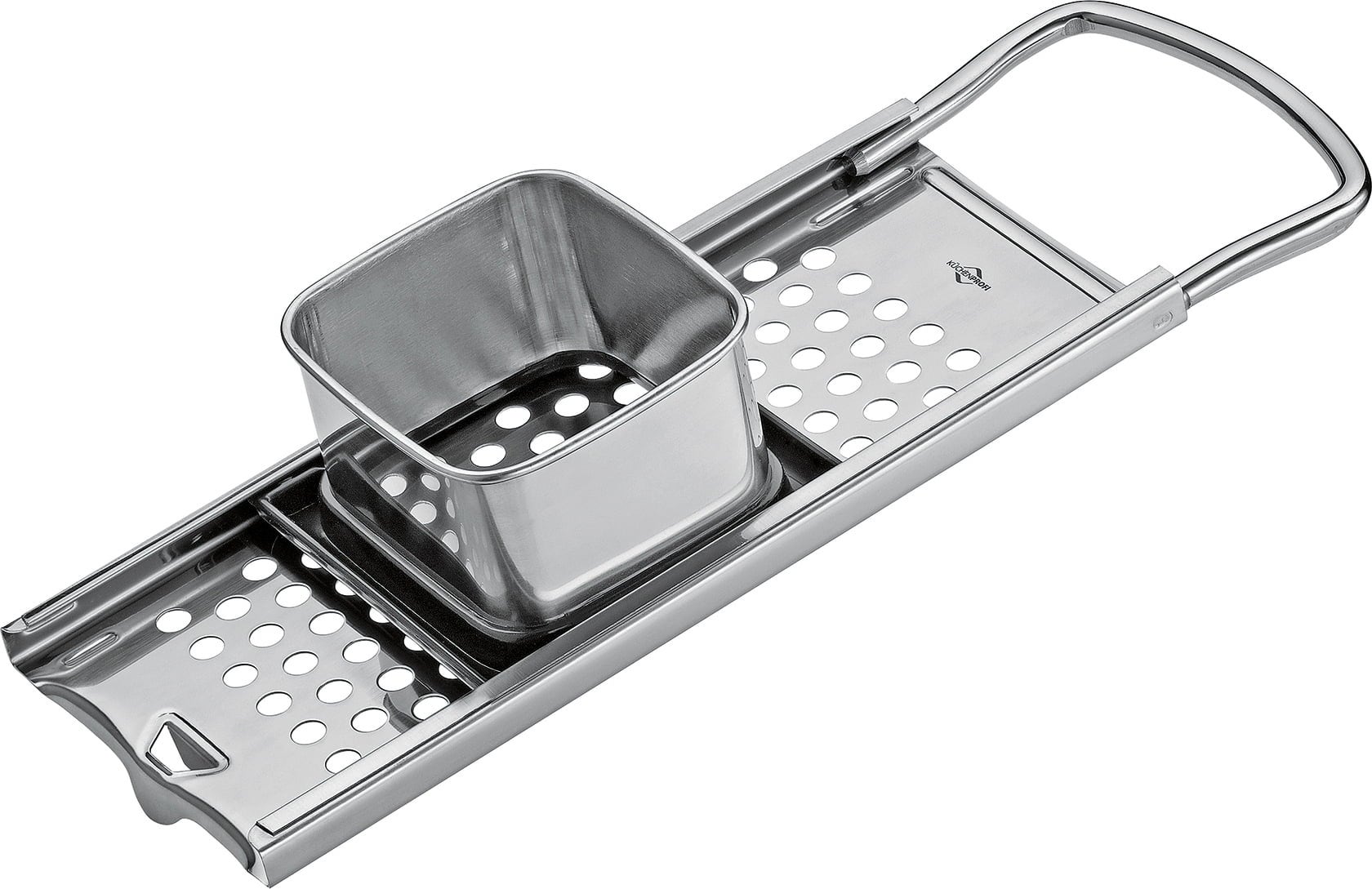 - Einfache Anwendung: Teig in den Aufsatz geben und über die Reibe schieben. Durch die Löcher fallen die Spätzle dann direkt ins heiße Wasser.