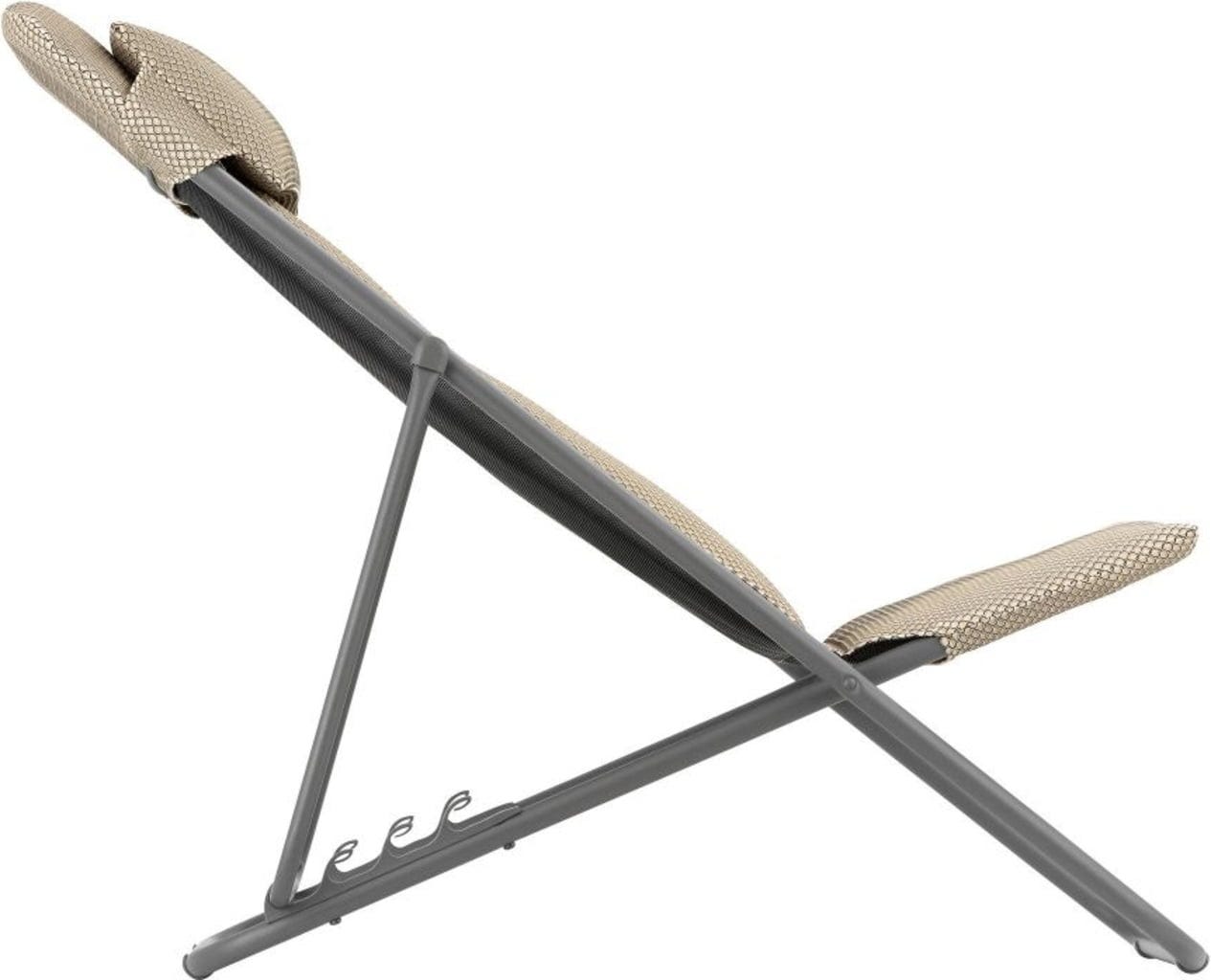 Der klappbare MAXI TRANSAT+ Liegestuhl überzeugt mit seinem robusten sowie korrosionsbeständigen Stahlrohr-Gestell und seiner Komfortbreite. Zudem hat er einen bequemen Polsterbezug und ein abnehmbares Kopfkissen. Durch die Sicherheitsschiene lässt sich die Neigung der Lehne in verschiedene Positionen einstellen - für angenehme Ruhepausen im Garten, auf der Terrasse oder am Pool.