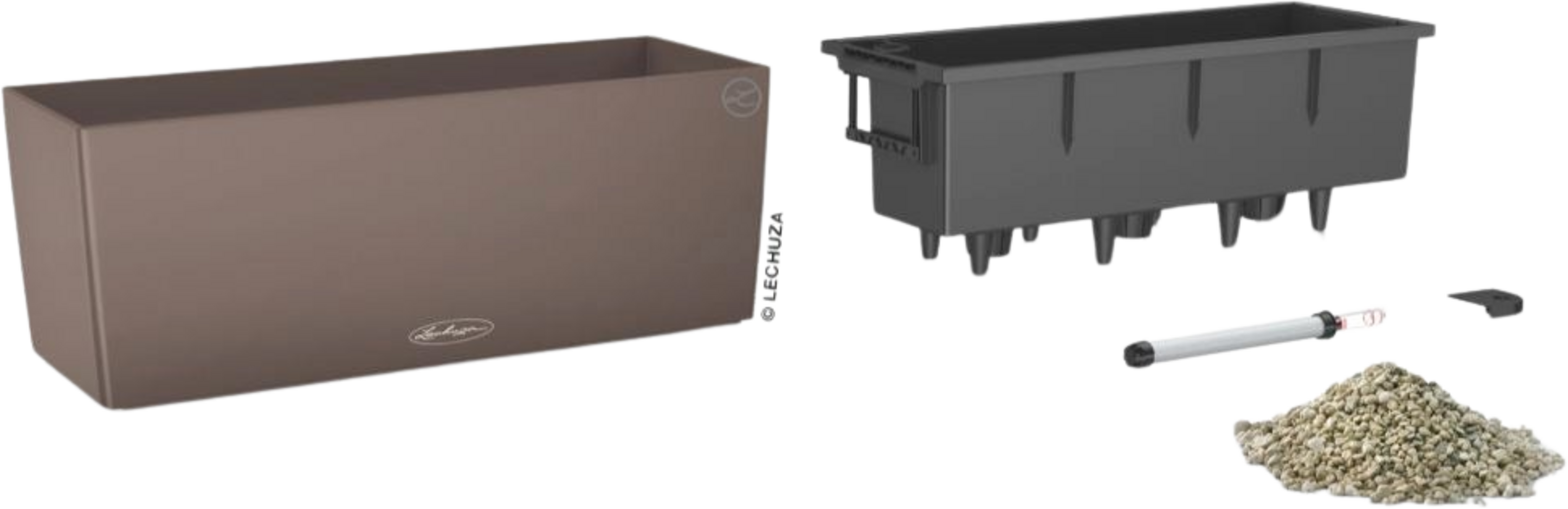 Lieferumfang: Pflanzgefäß, Pflanzeinsatz, Wasserstandsanzeiger, Granulat