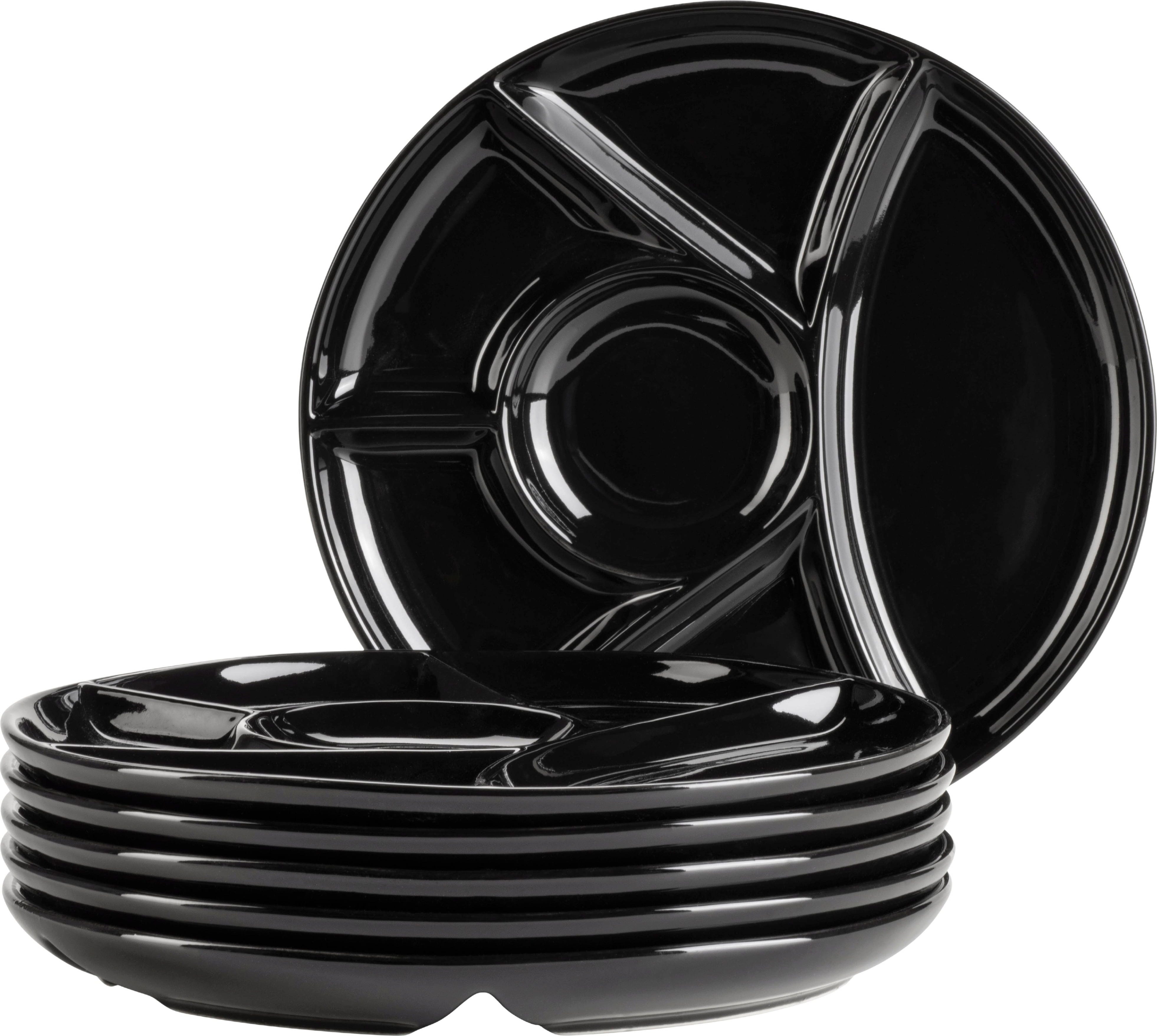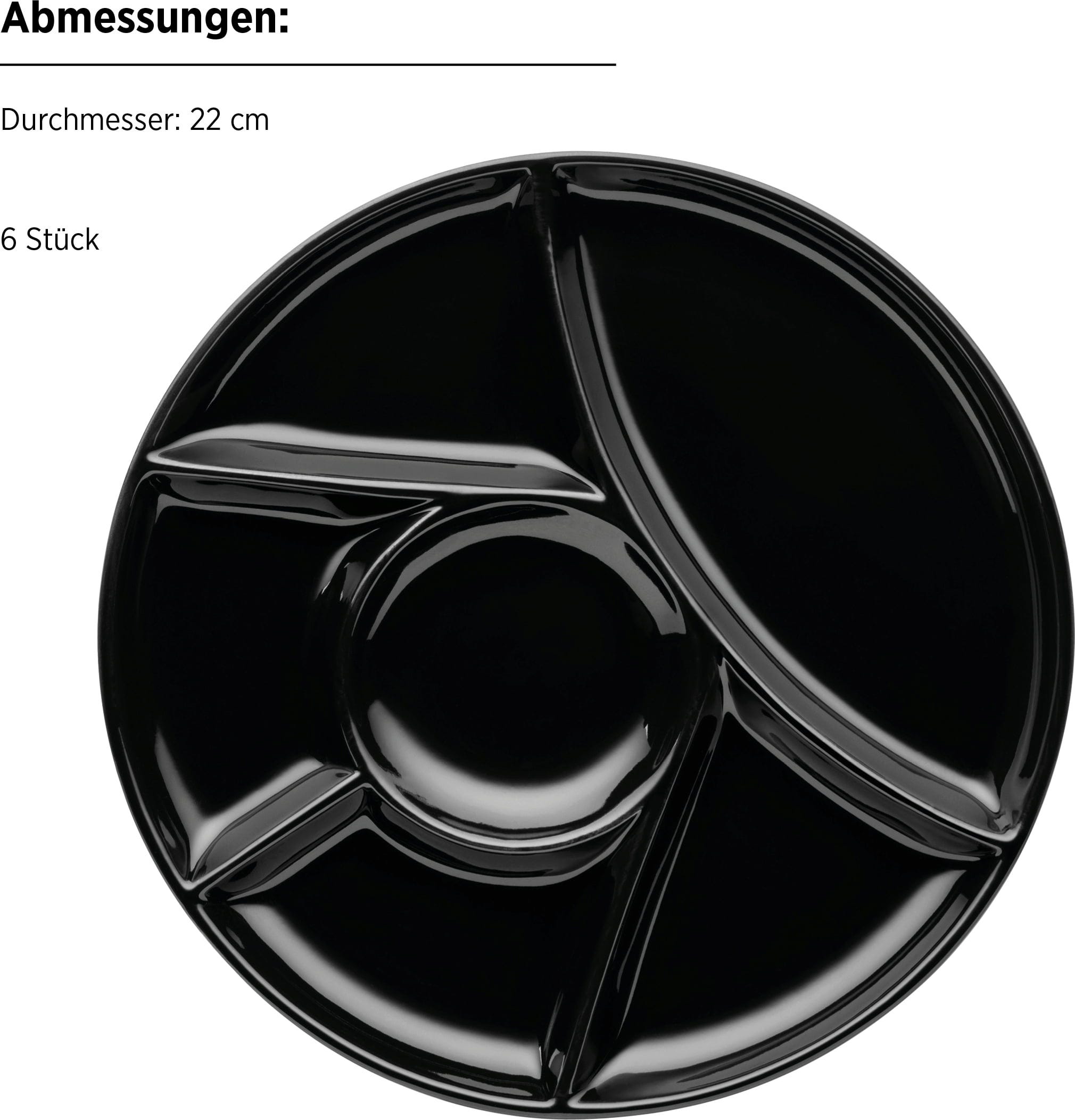 Setze ein modernes Statement bei deinem nächsten Fondue- oder Raclette-Abend mit diesem 6er-Set Fondueteller in elegantem Schwarz von Mäser. Gefertigt aus hochwertigem und robustem New Bone Porzellan, bieten die Teller durch ihre praktischen Unterteilungen den idealen Platz, um Fleisch, Beilagen und Dips sauber getrennt voneinander anzurichten.