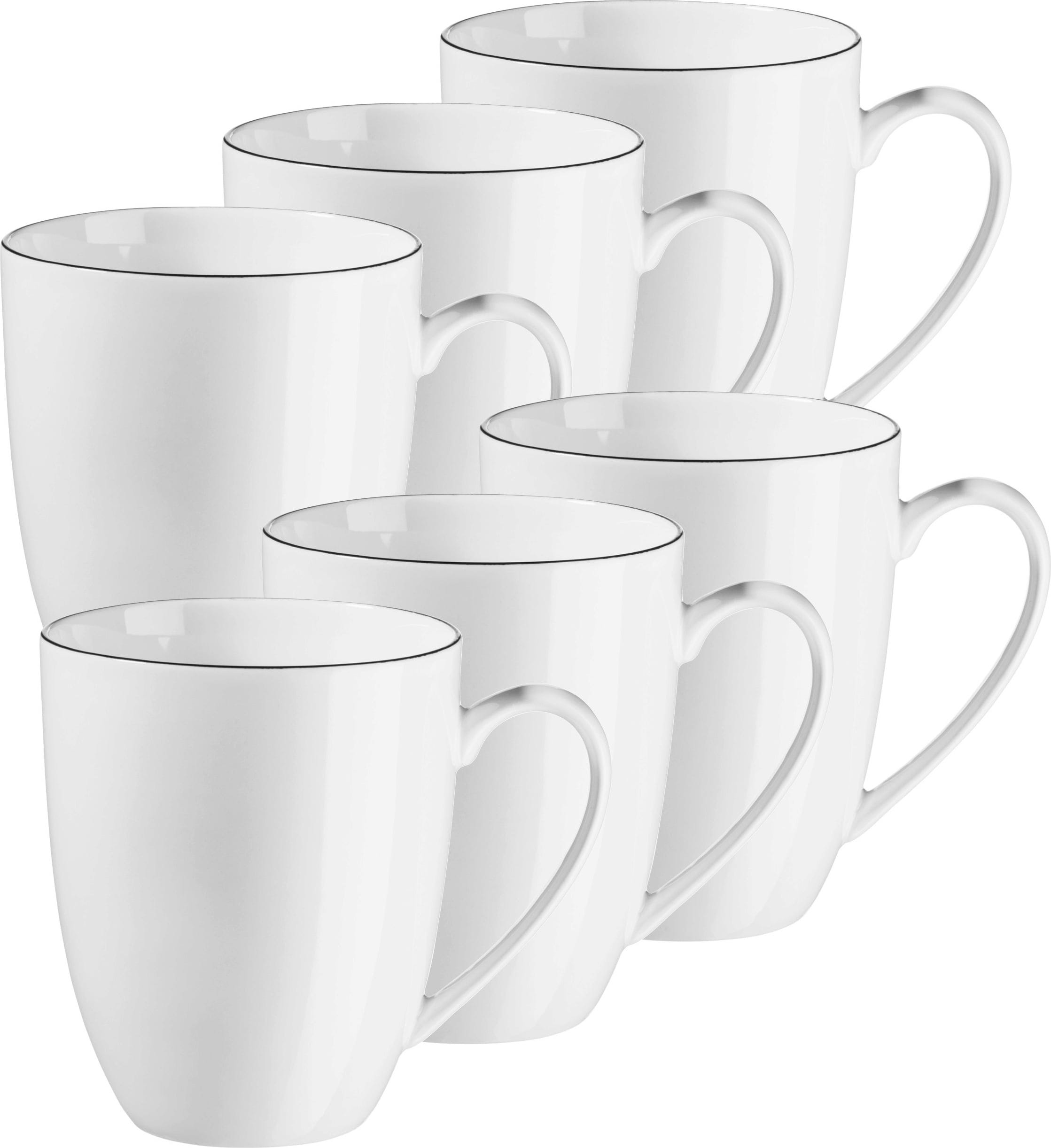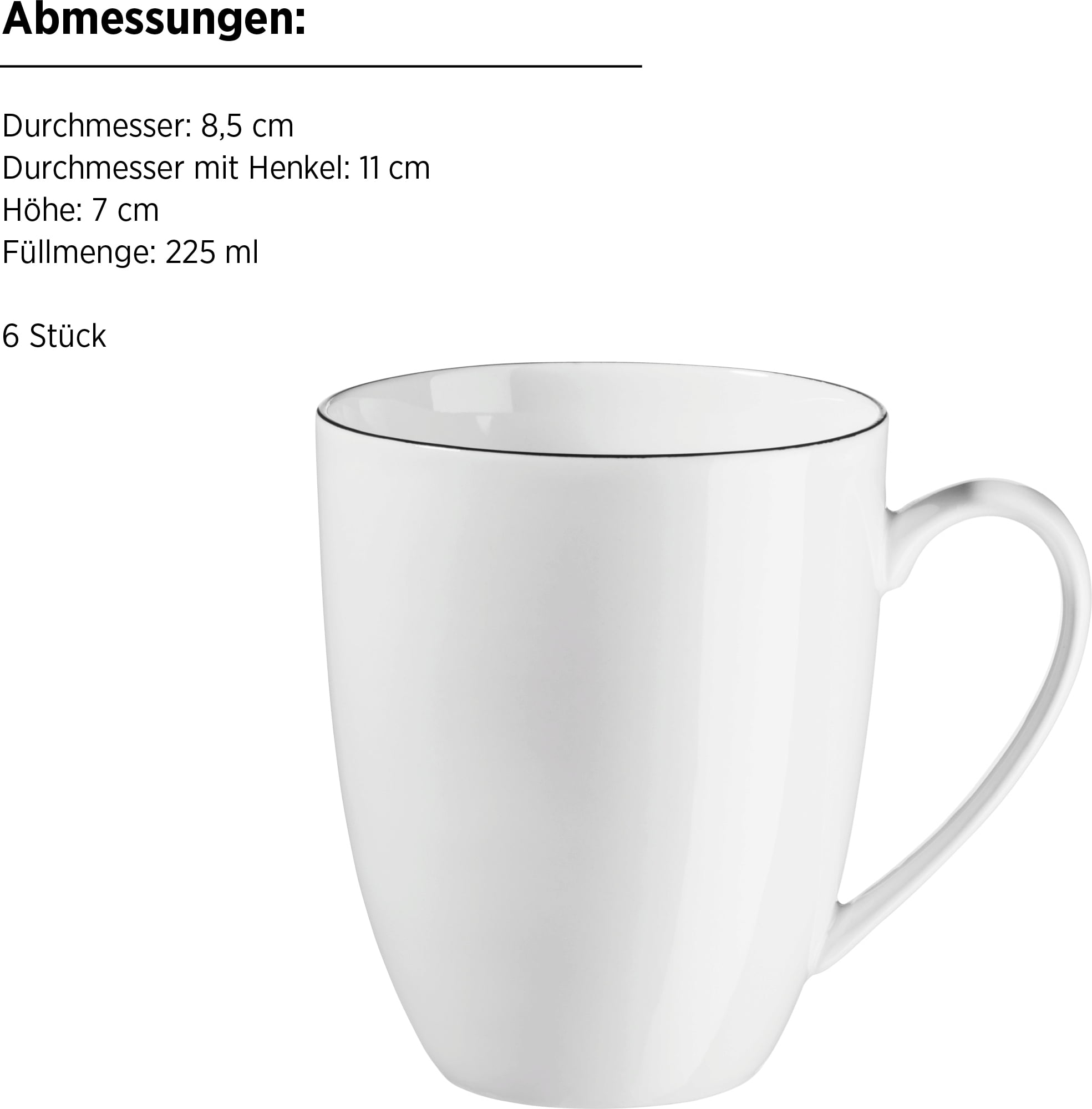Genieße deine Kaffeemomente mit einer Extraportion Eleganz! Das Zusammenspiel aus strahlendem Weiß und dem feinen, schwarzen Rand macht jeden Schluck – egal ob aromatischer Cappuccino, cremiger Latte Macchiato oder dein Lieblingstee – zu einem optischen Highlight.