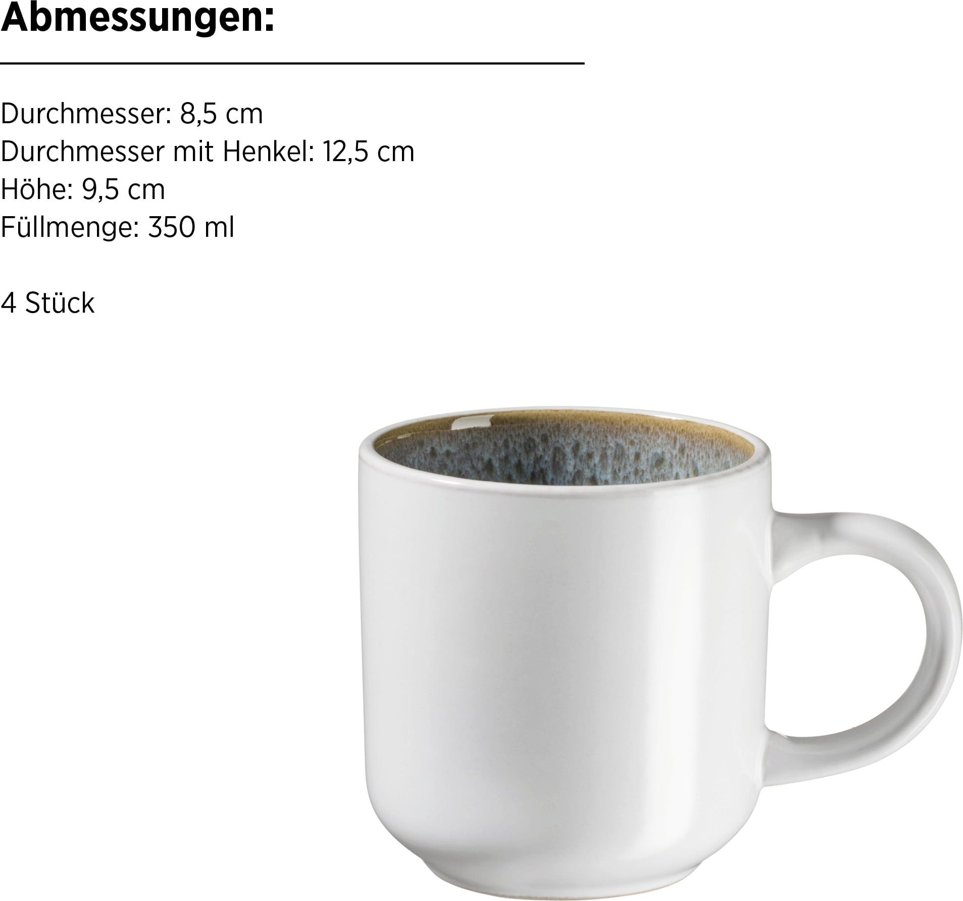 - Ø mit Henkel: 12,5 cm