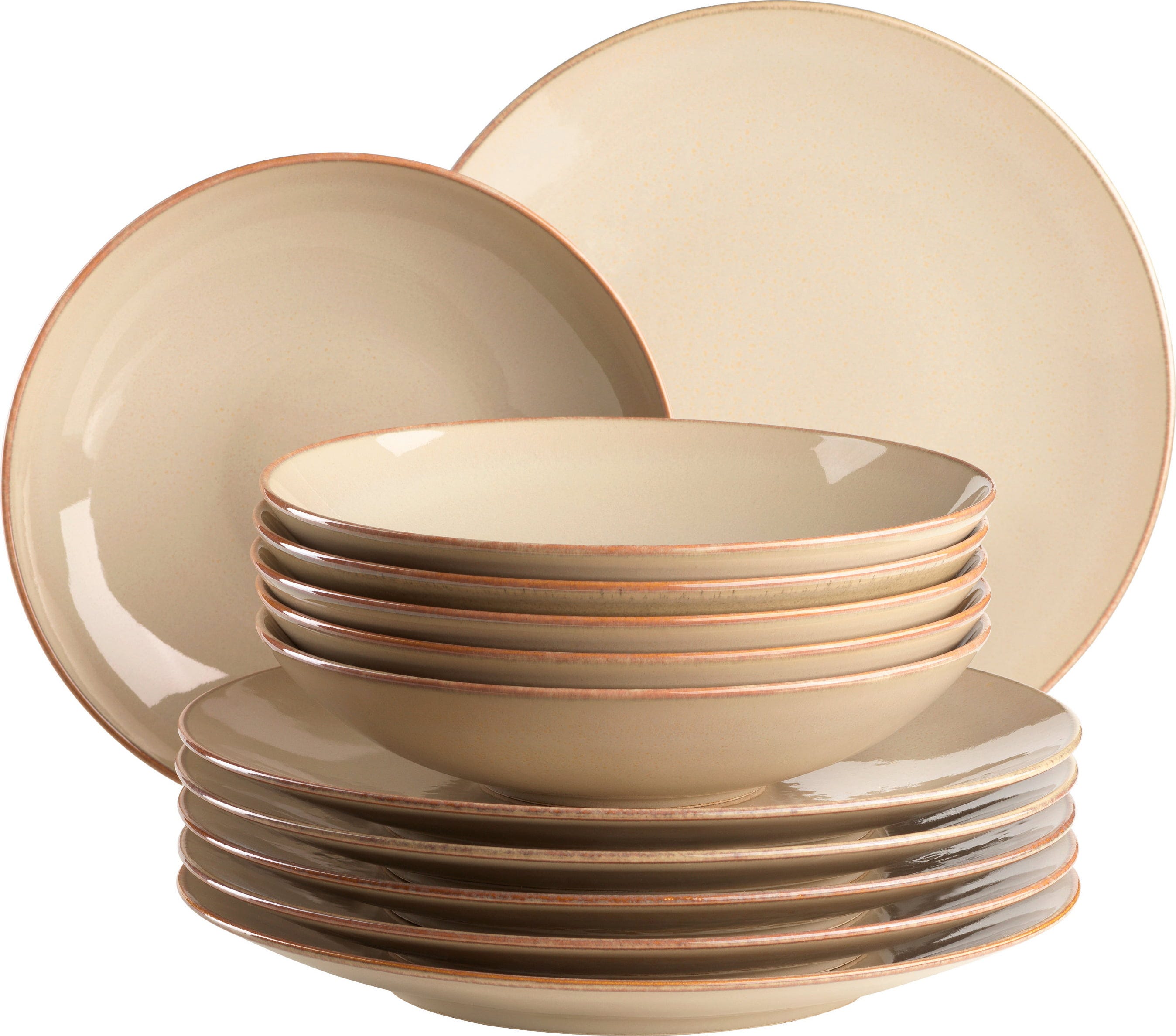 Hol dir das pure mediterrane Lebensgefühl direkt an deinen Esstisch mit dem 12-teiligen Tafelservice Ossia. Die Serie besticht durch moderne, schlichte Formen aus robustem Steinzeug und eine unregelmäßig schimmernde Glasur, die jedes Teil zum Vintage-Unikat macht.