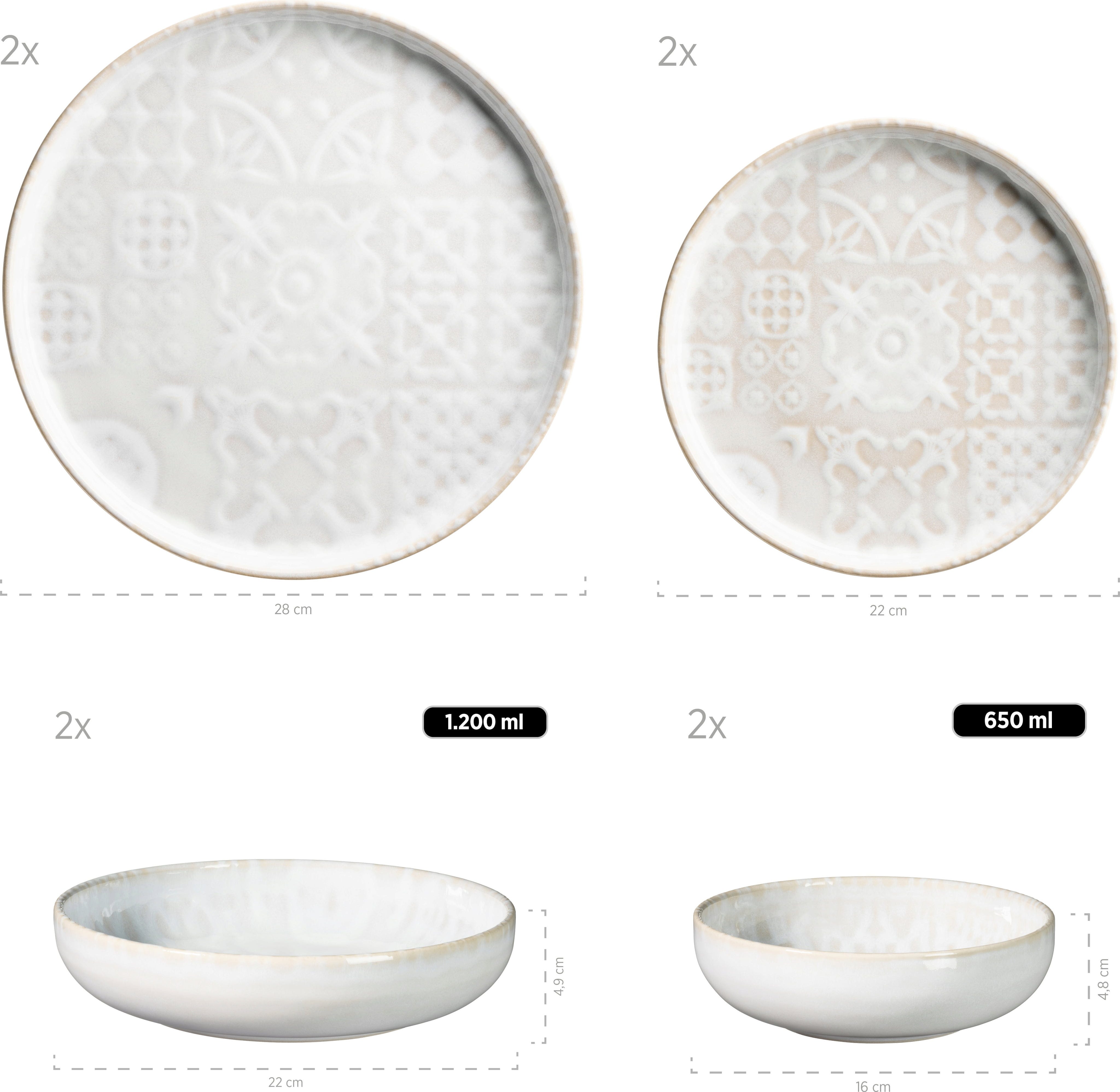 Mäser Traditional Tiles 8-teiliges Tafelservice, weiß