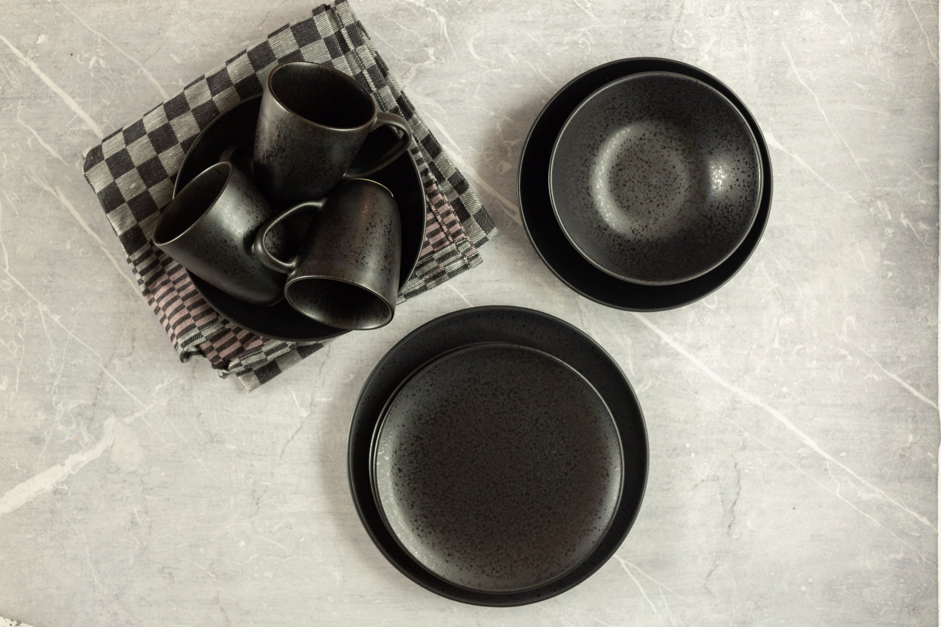 Mit dem sechsteiligen Speiseteller-Set Essential von Mäser verleihst du deinem Esstisch eine unverwechselbare, moderne Note! Die Kombination aus einer tiefschwarzen, matten Glasur und den dezent glänzenden Sprenkeln erzeugt eine faszinierende Optik, die deine kulinarischen Kreationen perfekt in Szene setzt und jedes Abendessen mit Freunden zu einem stilvollen Event macht.