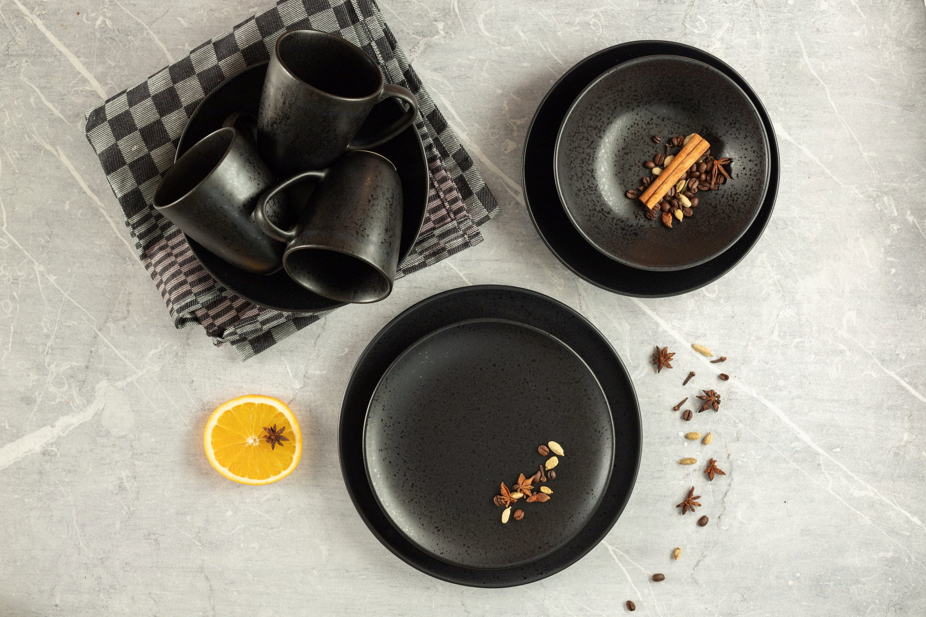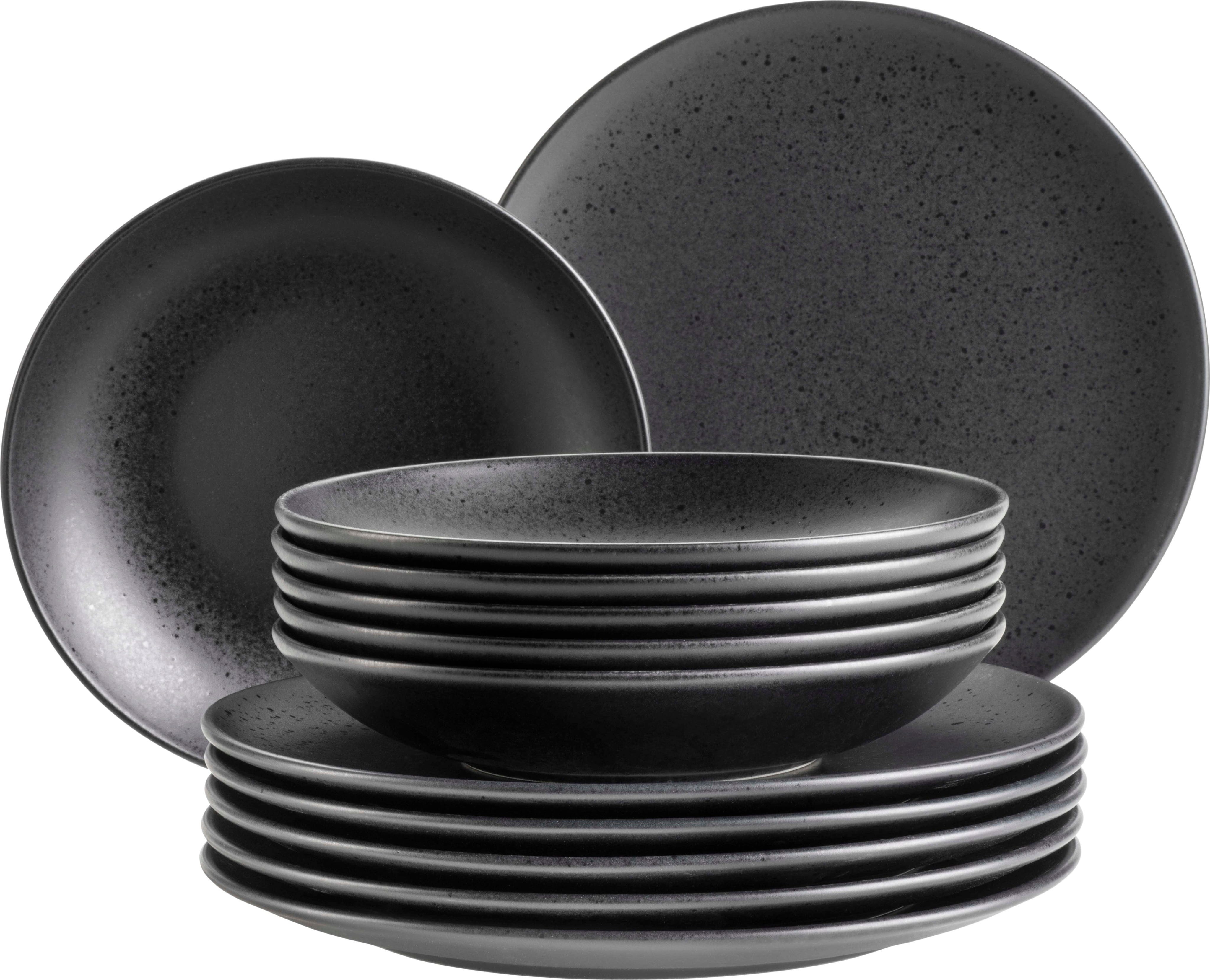 Mit dem Essential Teller-Set von Mäser sicherst du dir sechs Speiseteller sowie sechs Dessert- bzw. Vorspeisenteller und verleihst deinem Esstisch eine unverwechselbare, moderne Note! Die Kombination aus einer tiefschwarzen, matten Glasur und den dezent glänzenden Sprenkeln erzeugt eine faszinierende Optik, die deine kulinarischen Kreationen perfekt in Szene setzt und jedes Abendessen mit Freunden zu einem stilvollen Event macht.