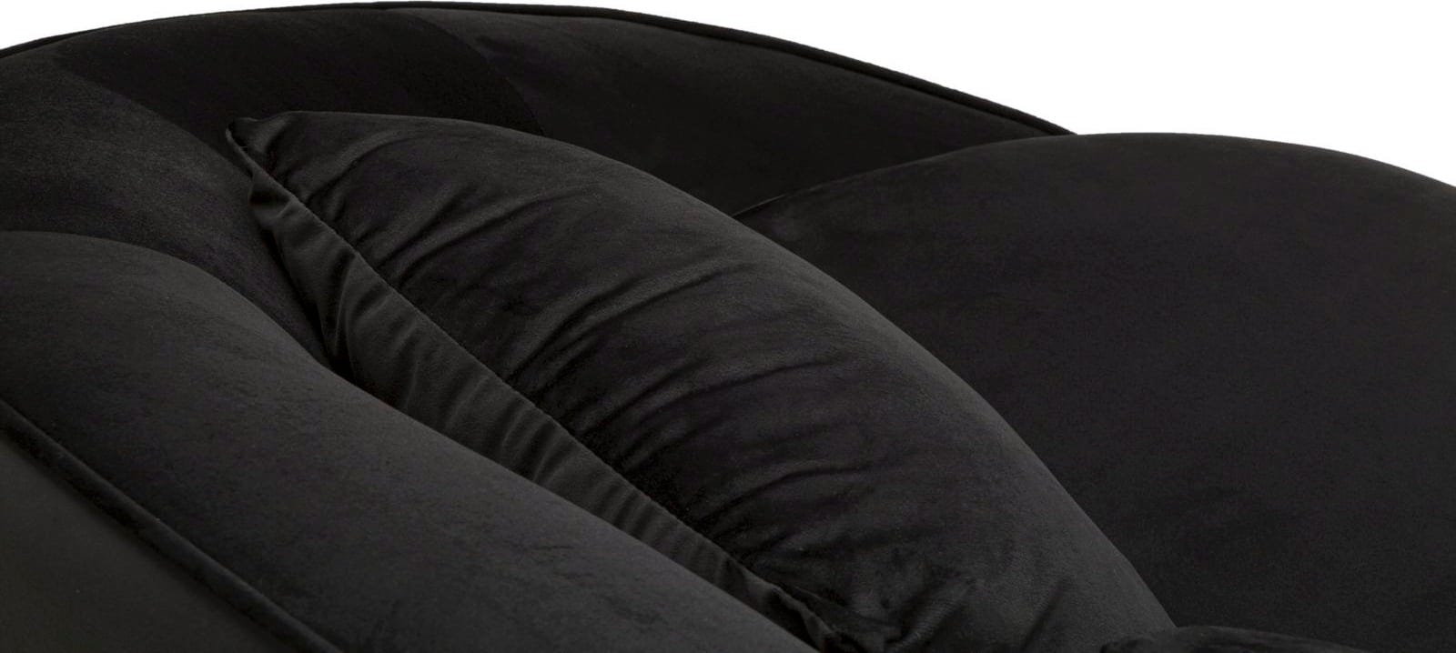Verwandle dein Wohnzimmer in eine Oase des modernen Glamours mit diesem eleganten Dreisitzer-Sofa! Der luxuriöse, schwarze Stoff in Samtoptik und die weichen, einladenden Linien der geschwungenen, asymmetrischen Form sorgen für einen beeindruckenden Blickfang.