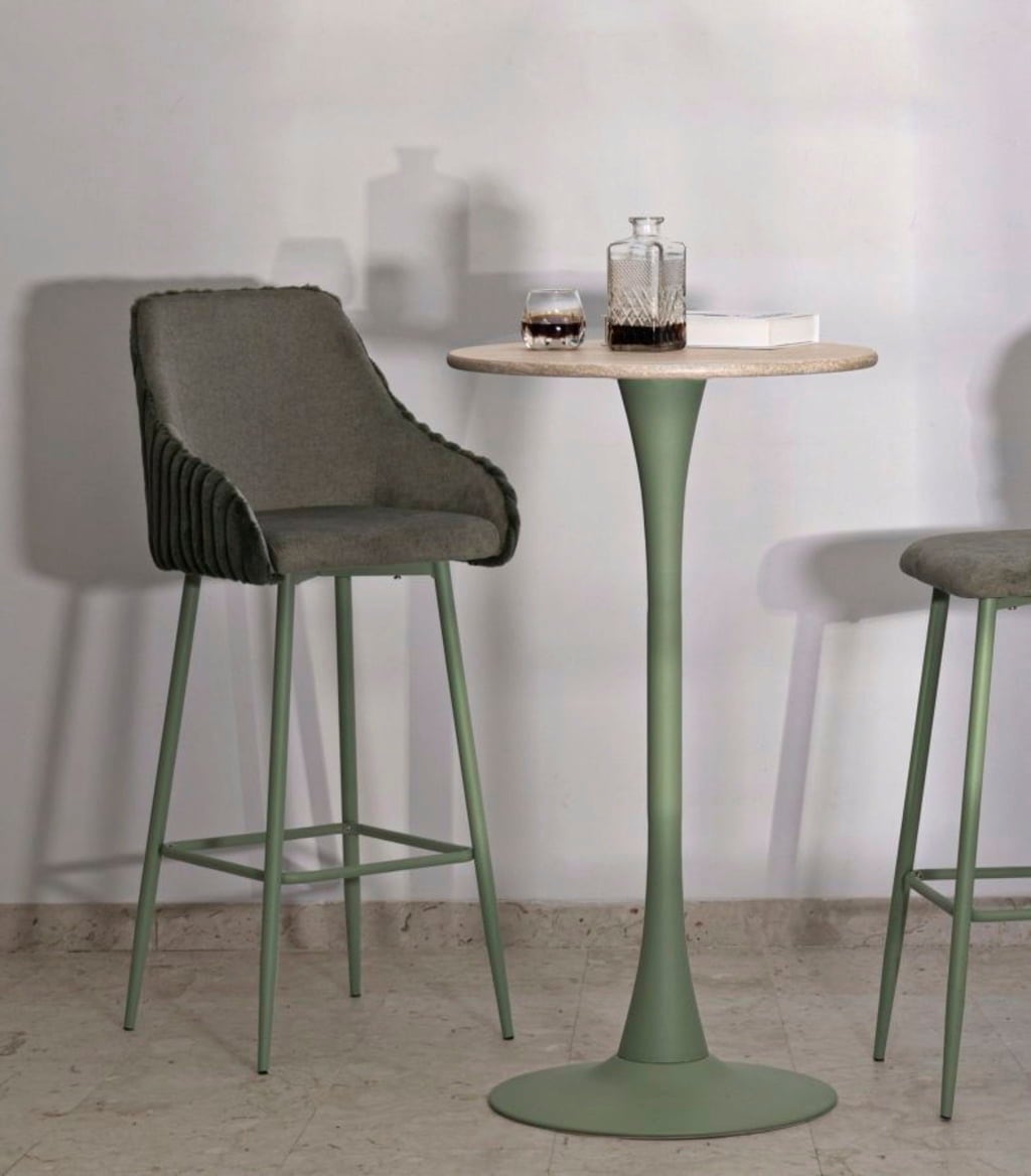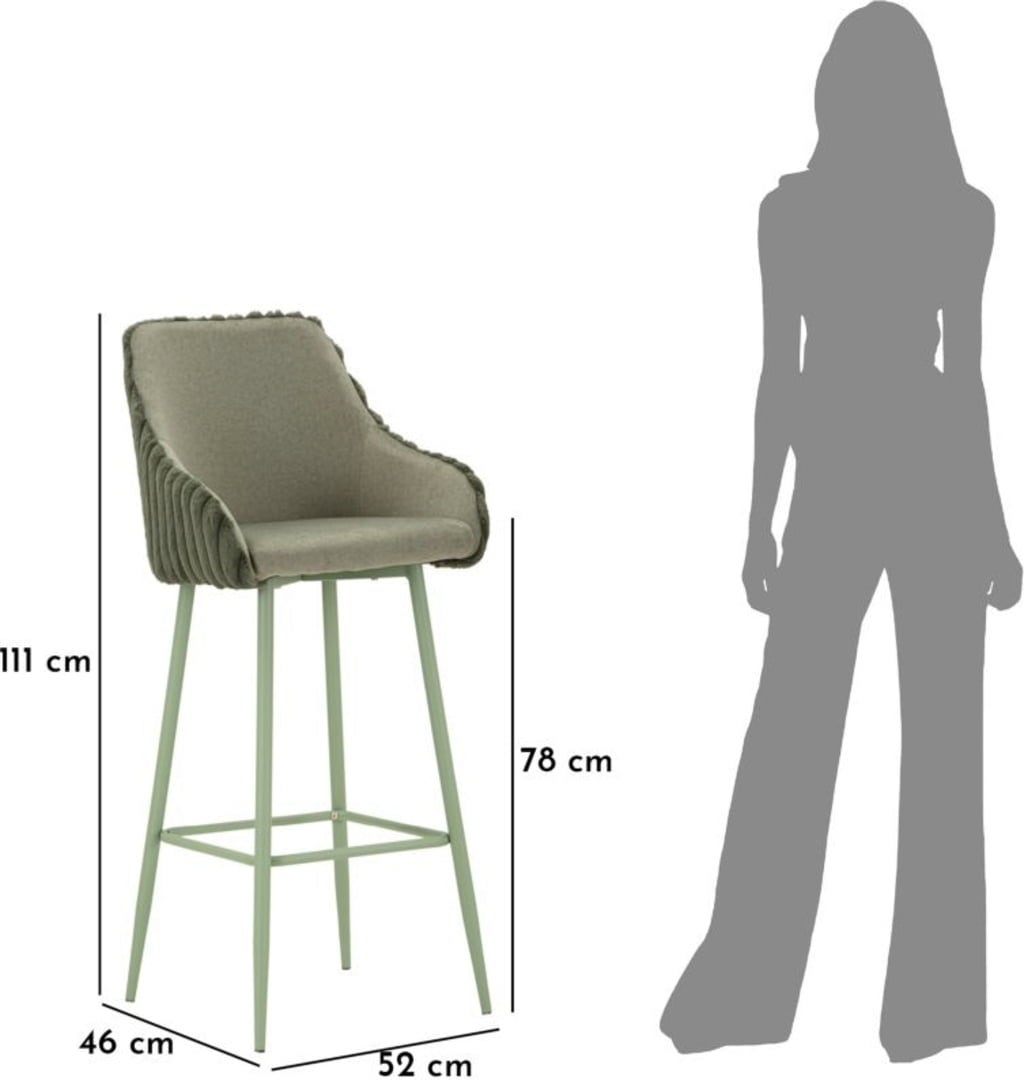 Möchtest du deine Bar- oder Küchenecke mit einem Hauch von modernem Design und hohem Sitzkomfort ausstatten? Der Barhocker Alaska in elegantem Grünton ist dafür die ideale Wahl. Dieser Hocker vereint weichen Sitzkomfort mit einer klaren, zeitgenössischen Linienführung. Die trendige Farbe in Salbeigrün wird perfekt durch die samtig-gerippte Rückenlehne in Szene gesetzt, die nicht nur optisch überzeugt, sondern auch für eine angenehme Haptik sorgt.