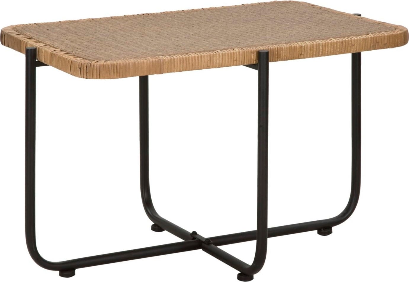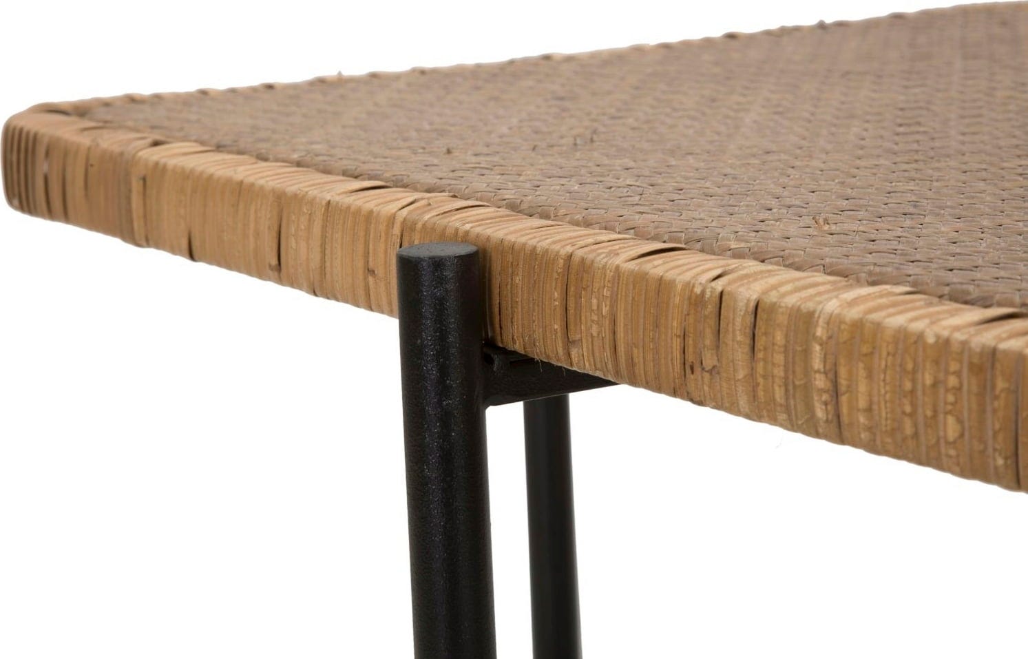 Die Tischplatte aus hochwertigem, geflochtenem Rattan verleiht dem Möbelstück eine warme, organische Textur und wird von einem stabilen, mattschwarzen Metallgestell getragen. Dank der klaren Linienführung und des minimalistischen Kreuzgestells am Boden fügt sich Cebu nahtlos in jede Art von Einrichtung ein – ob modern, skandinavisch oder im gemütlichen Boho-Look.