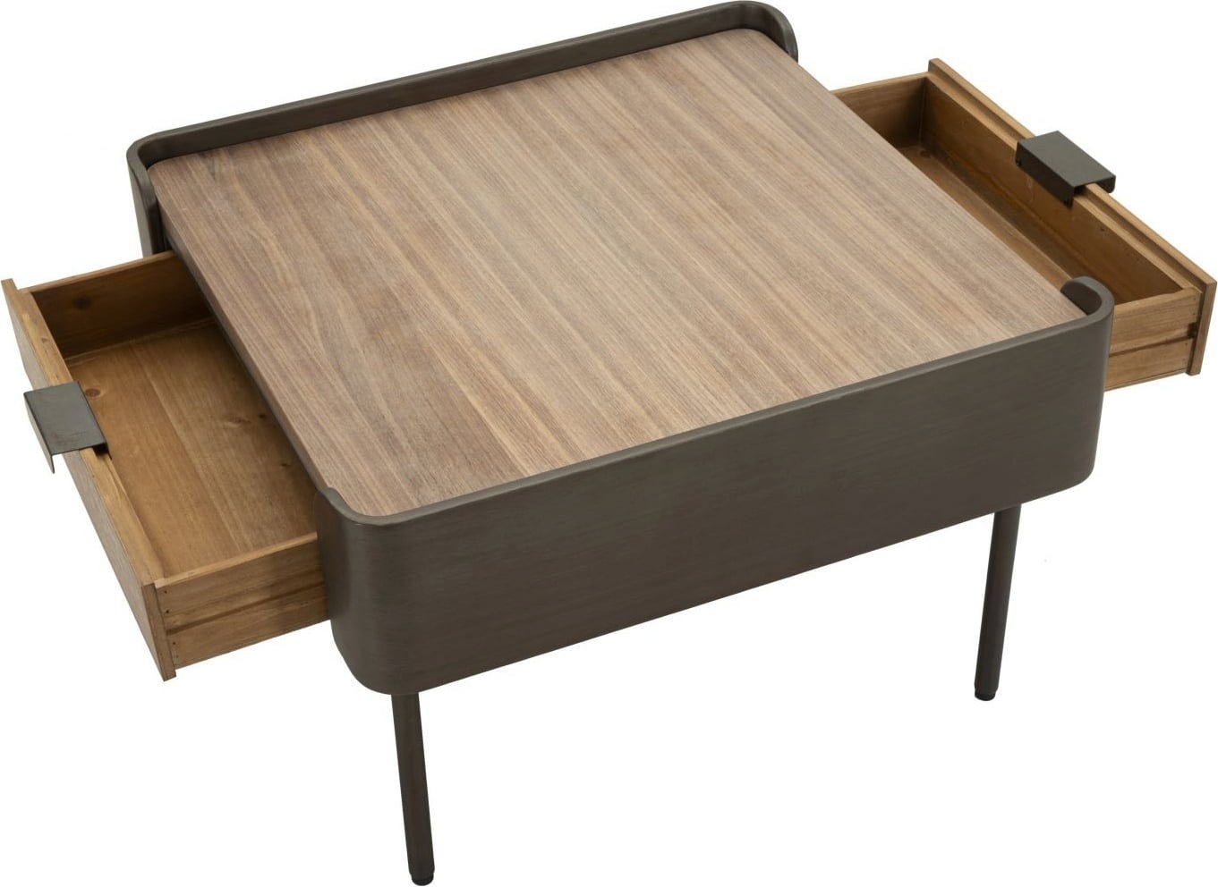 Für maximale Funktionalität sorgen zwei integrierte Schubladen, die diskreten Stauraum für Fernbedienungen, Zeitschriften oder andere Kleinigkeiten bieten. Durch das clevere Design des Tisches vereinst du Ästhetik und praktischen Nutzen und hältst dein Wohnzimmer mühelos ordentlich und elegant.