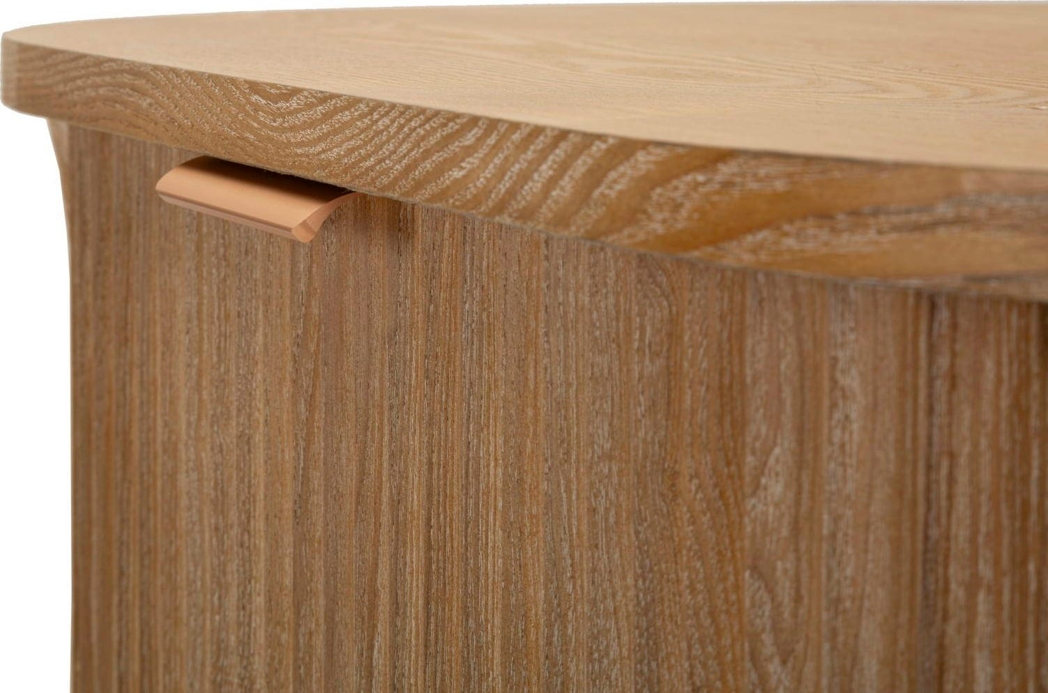 Die Fronten sind dezent vertikal strukturiert, was der Kommode eine raffinierte Textur verleiht. Sie bietet dir dank der drei großen Schubladen immensen Stauraum, ideal um Ordnung und Ruhe in dein Schlaf- oder Wohnzimmer zu bringen. Vervollständigt wird der stilvolle Look durch dezente, kupferfarbene Griffe. Göteborg ist das ideale Möbelstück, um Funktionalität und ästhetische Ruhe harmonisch zu vereinen.