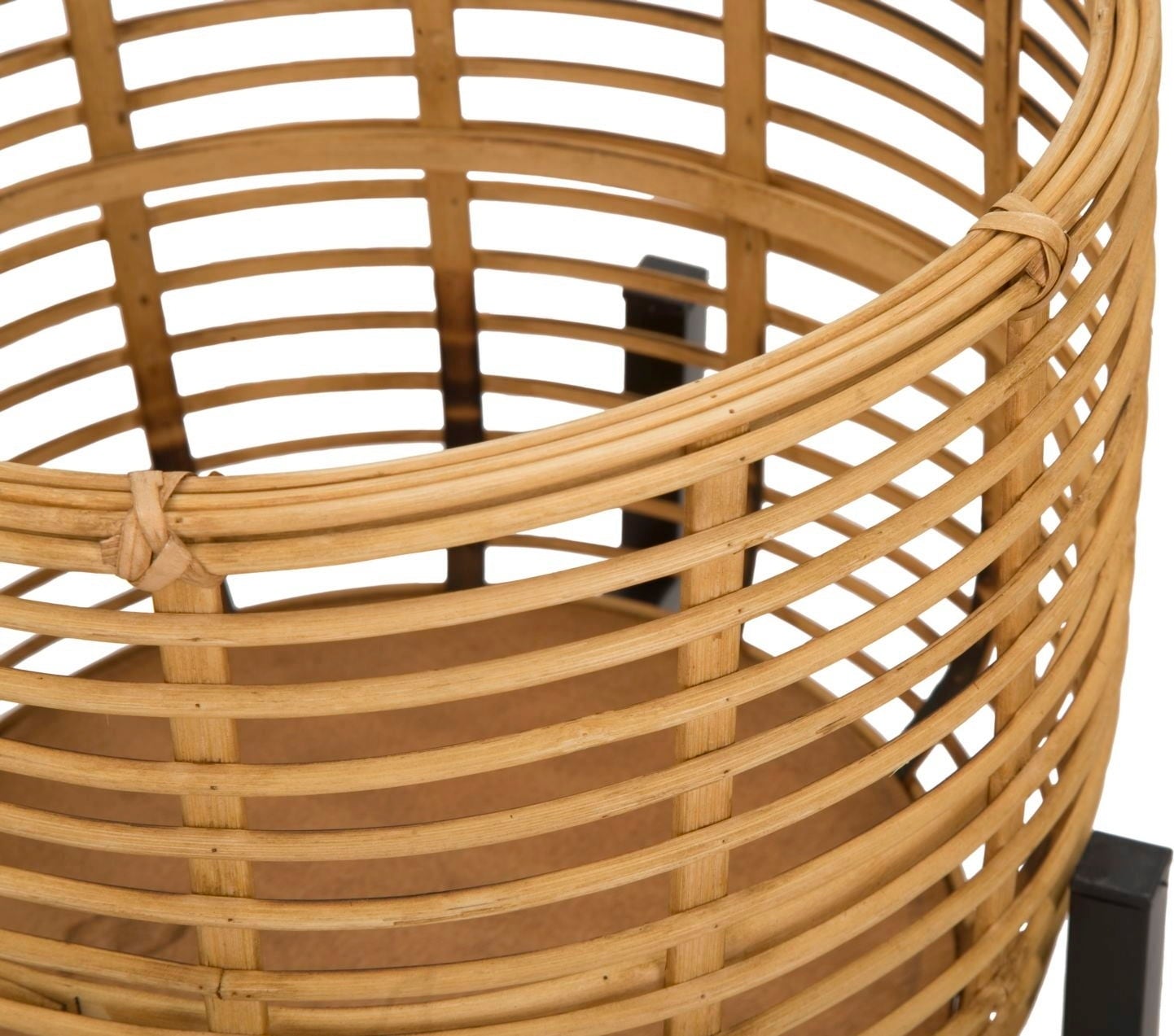 Setze deine Pflanzen mit diesem eleganten 2er-Set von Pflanztopfhaltern gekonnt in Szene! Das Design vereint eine natürliche Ästhetik mit einem modernen Touch: Die Pflanzschalen bestehen aus Rattan in einem schlichten, klassischen Geflecht, das Wärme und Natürlichkeit ausstrahlt. Im Kontrast dazu steht der schwarze Metallsockel in einem geradlinigen Design, der die Schalen leicht anhebt und dem Ensemble eine zeitgenössische Note verleiht.
