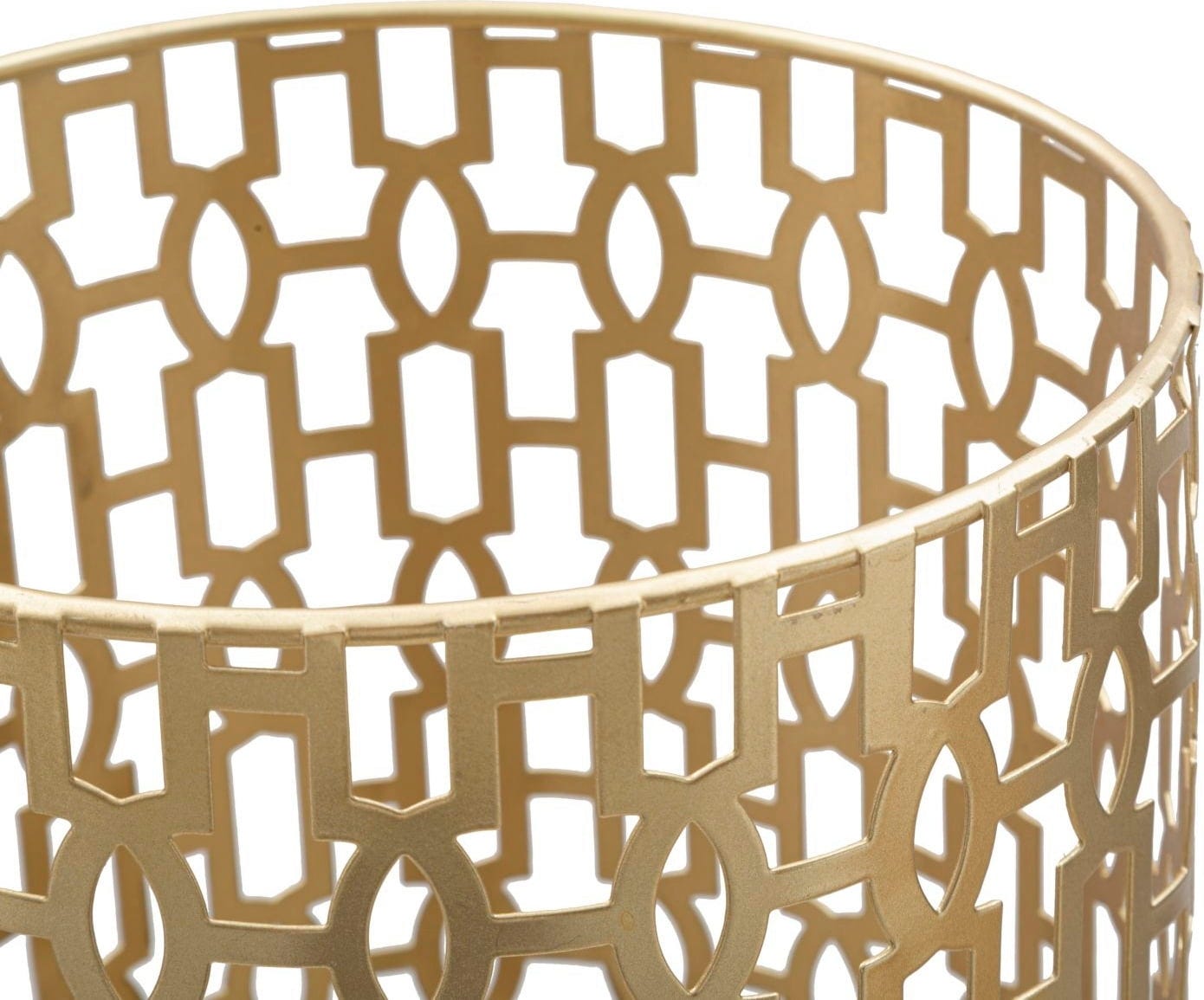 Dank der filigranen Gitterstruktur und des edlen Gold-Finishs versprüht der Halter einen Hauch von Klasse und Exklusivität, der jeden Raum sofort aufwertet. Eine integrierte Auffangschale am Boden sorgt zudem dafür, dass dein Boden auch an Regentagen trocken bleibt.