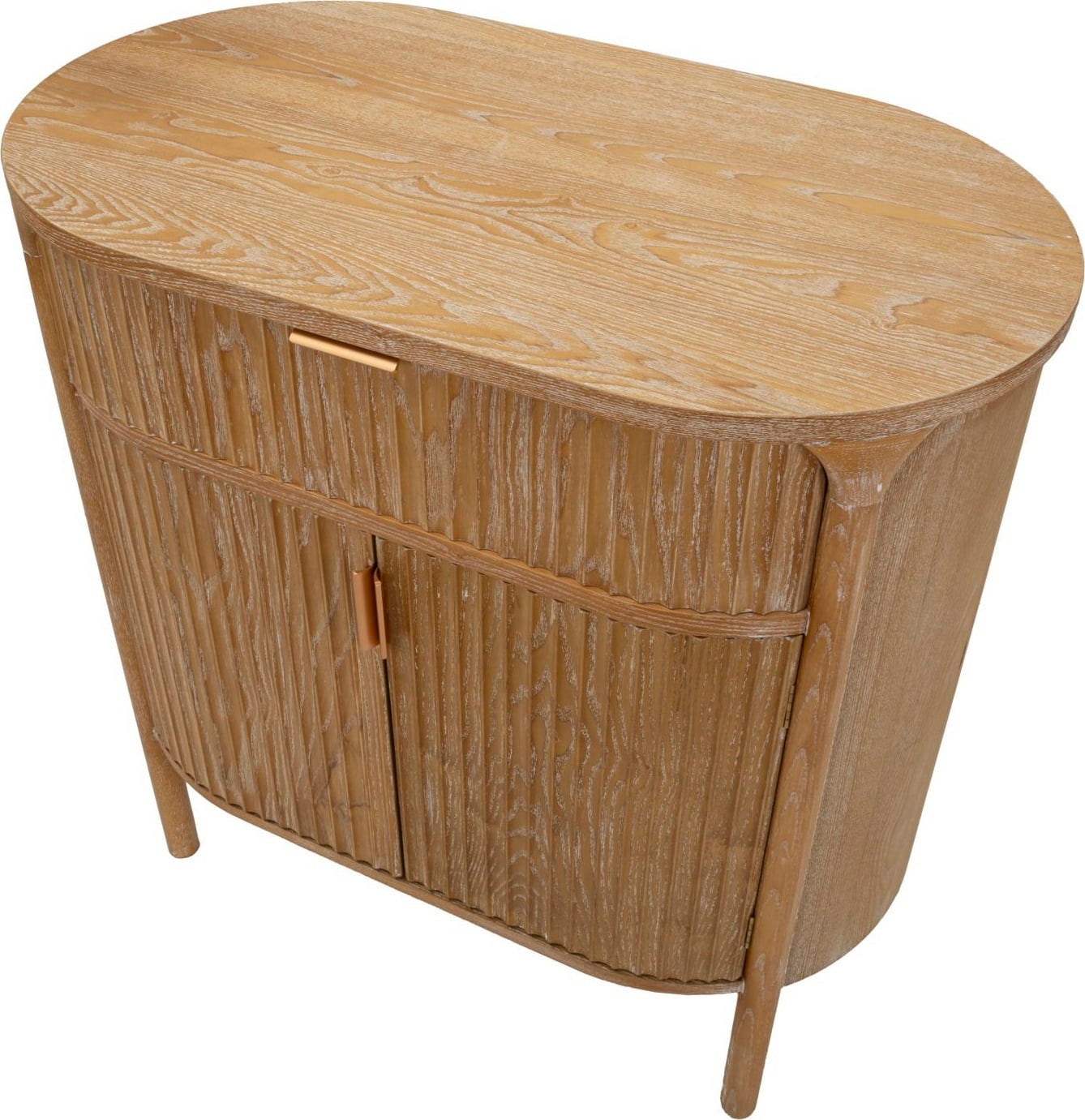 Suchst du nach einer vielseitigen Stauraumlösung, die Funktionalität und skandinavischen Stil vereint? Der Schrank Göteborg ist die perfekte Wahl für dich. Seine robuste Konstruktion und die weichen, abgerundeten Linien in Naturholz-Optik verleihen jedem Raum sofort eine elegante Note. Die Fronten des Schranks sind mit einer modernen, vertikal geriffelten Struktur versehen, was dem Möbelstück eine raffinierte Textur verleiht.