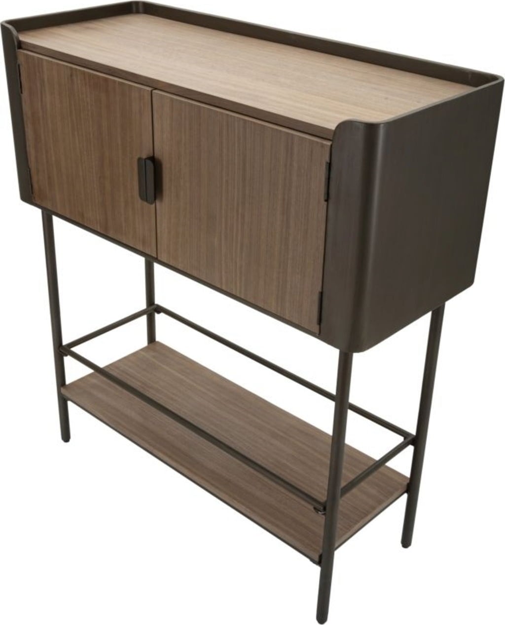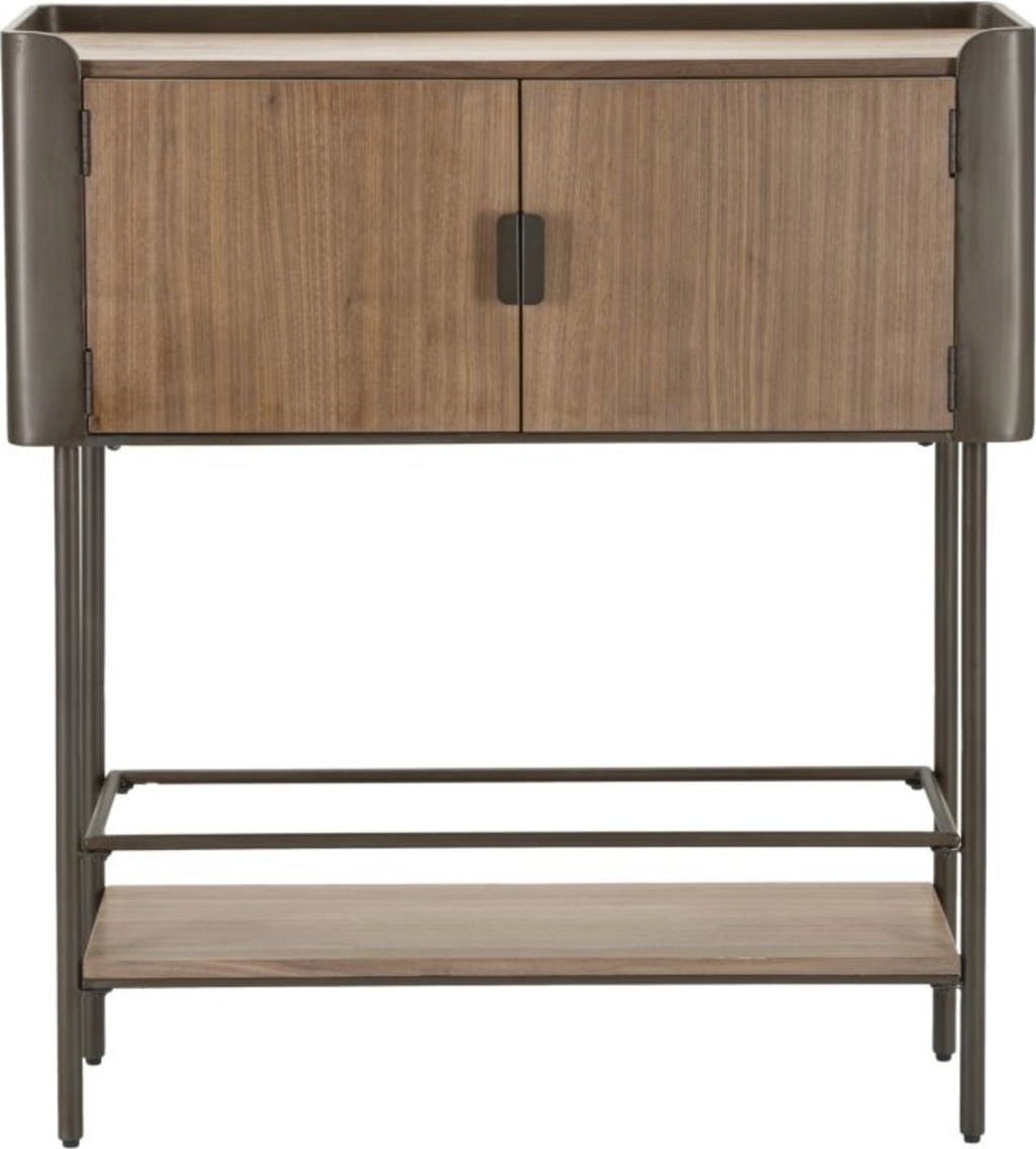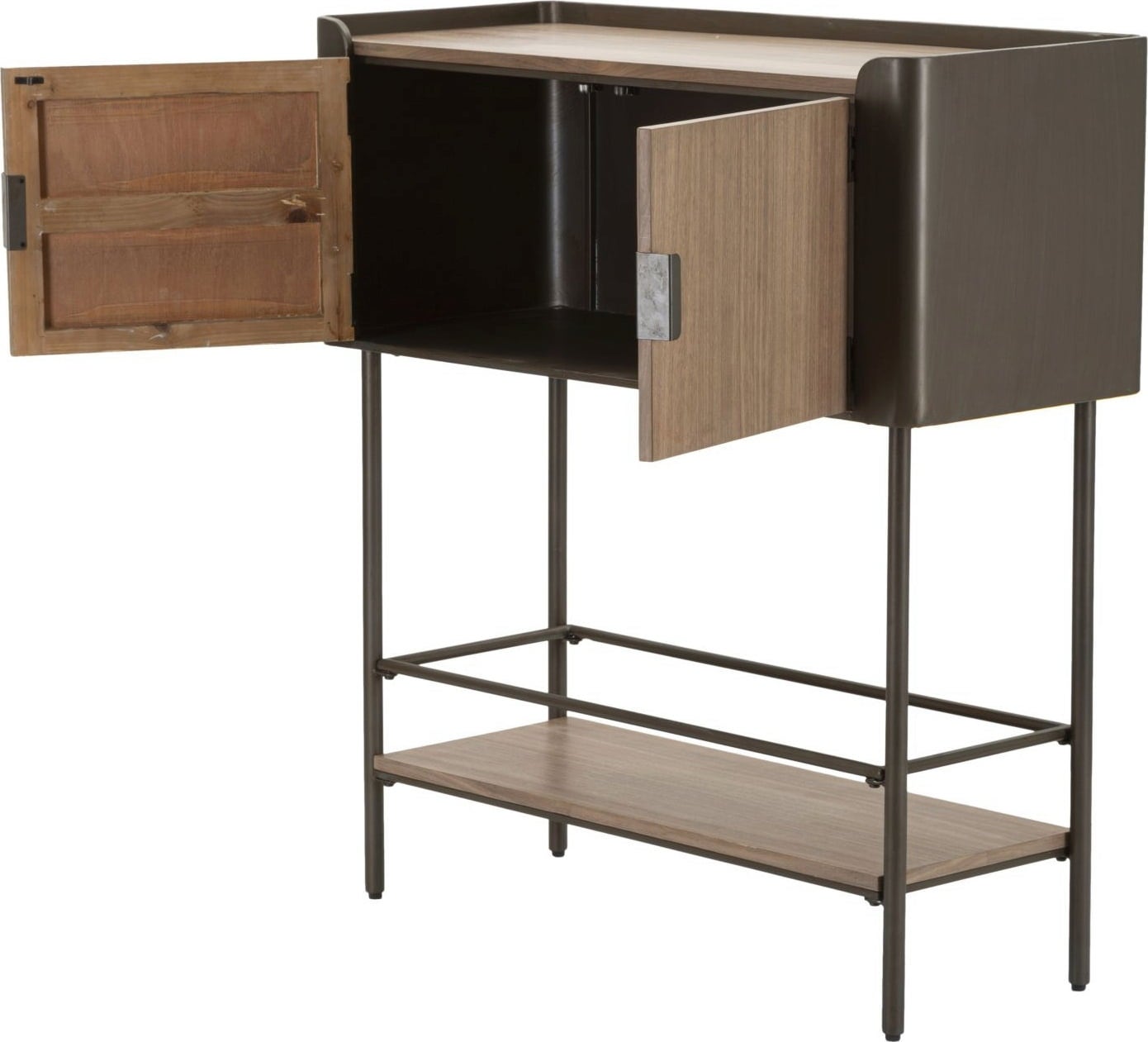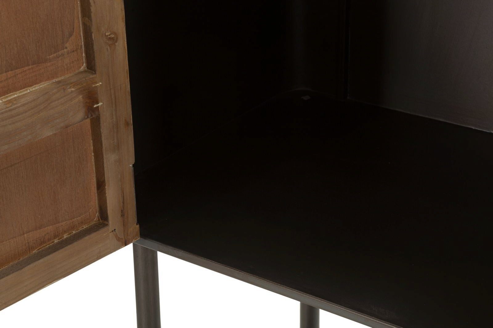 Ergänze deine Einrichtung um ein Möbelstück, das modernes Design und hohe Funktionalität vereint! Dieser Schrank besticht durch seine klare, prägnante Linienführung und den reizvollen Kontrast aus robustem Metall und warmer Holzoptik. Er ist die perfekte Ergänzung für jedes Ambiente. Der Korpus bietet hinter den zwei Türen diskreten Stauraum.