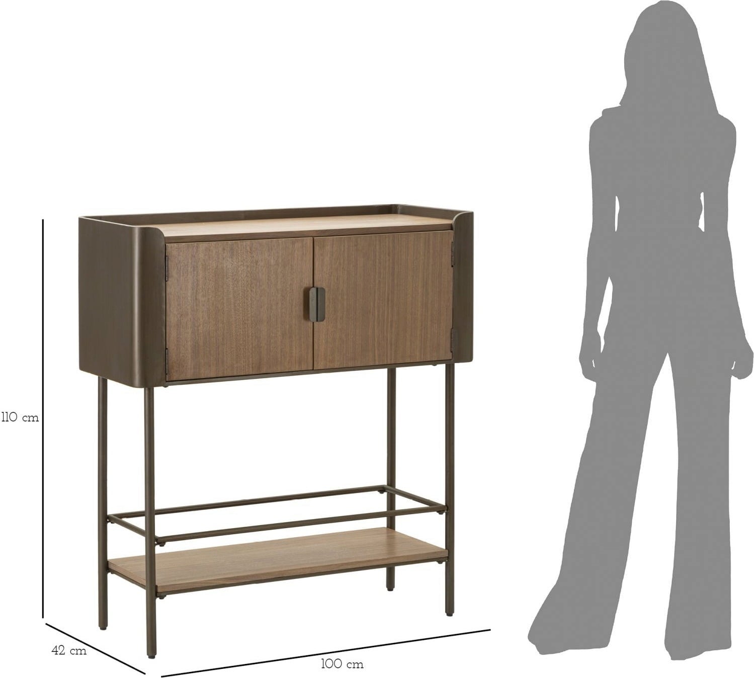 Die offene Ablagefläche unten ist ideal, um Dekorationen oder Bücher stilvoll in Szene zu setzen. Dank seines zeitgemäßen, industriell inspirierten Designs fügt sich dieser Schrank nahtlos in Wohnzimmer, Flur oder Büro ein und schafft eine aufgeräumte, elegante Atmosphäre!