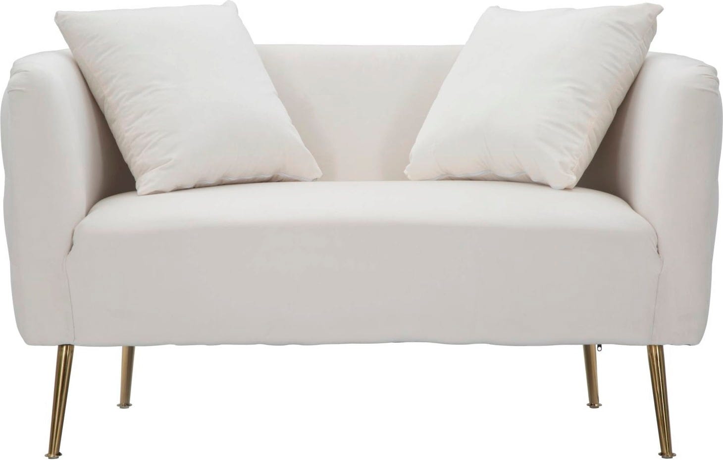 Die goldfarbenen Metallbeine bilden einen eleganten Kontrast zum Stoff, wobei Gold und Samt zu einem einzigartigen Stil verschmelzen – zwei passende Kissen sind im Lieferumfang enthalten!