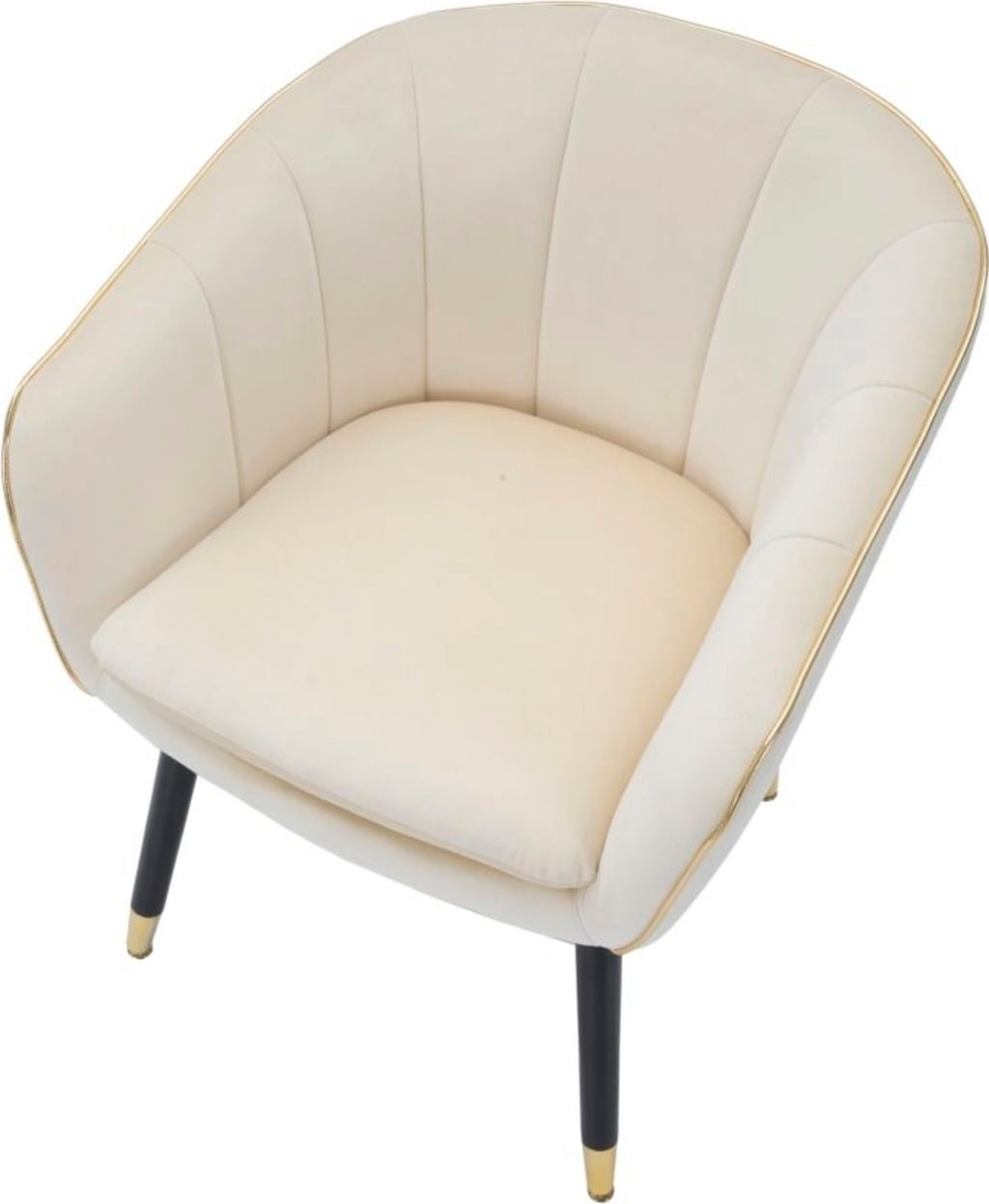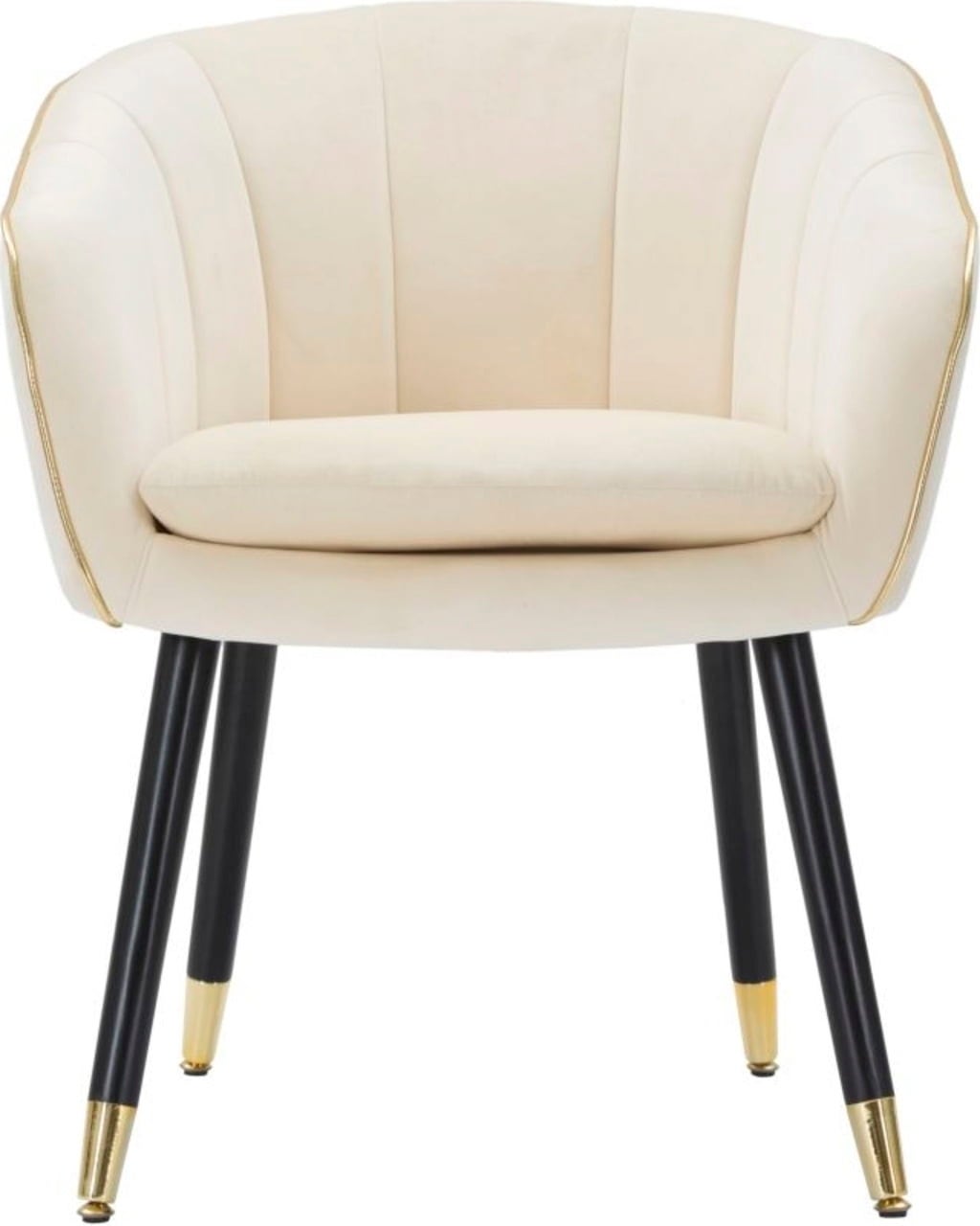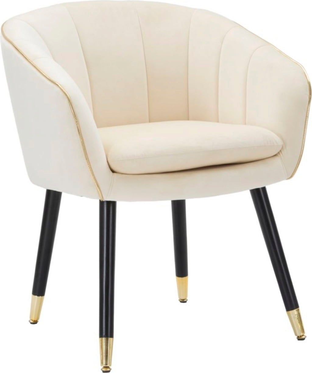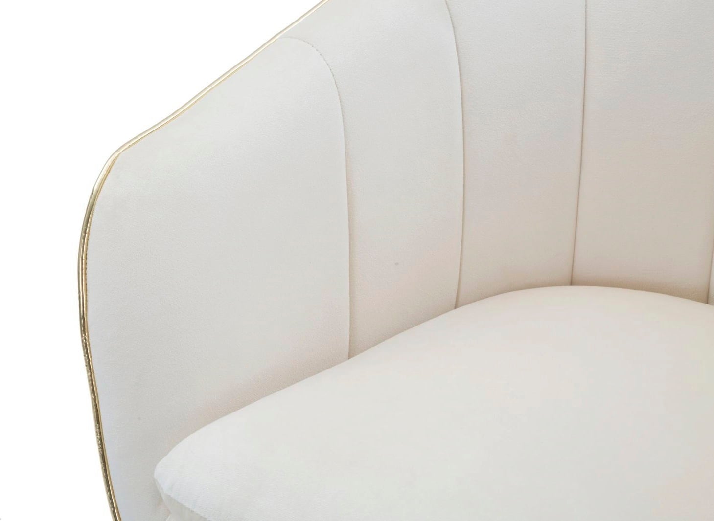 Verleihe deinem Raum einen Hauch von Klasse und entspannendem Komfort mit diesem eleganten Sessel! Er ist mit einem weichen, gepolsterten Stoffbezug in einem stilvollen Cremeton versehen. Die elegante Form wird durch eine glänzende goldene Keder-Einfassung betont, die für einen luxuriösen Akzent sorgt.