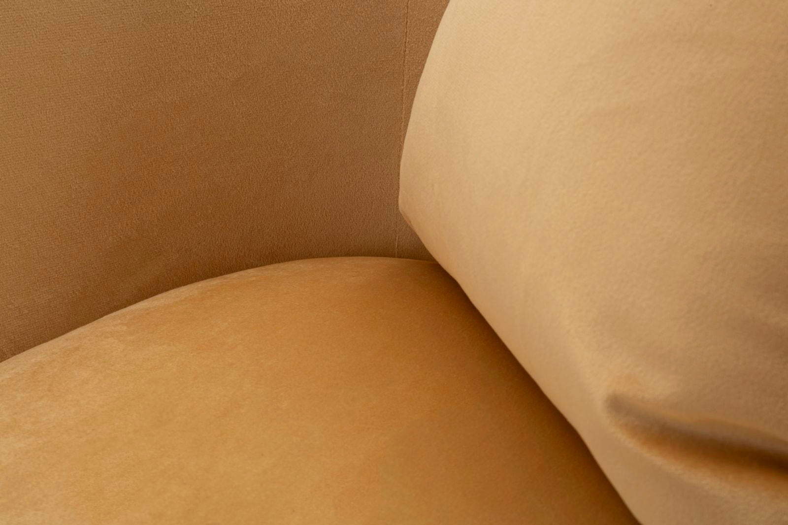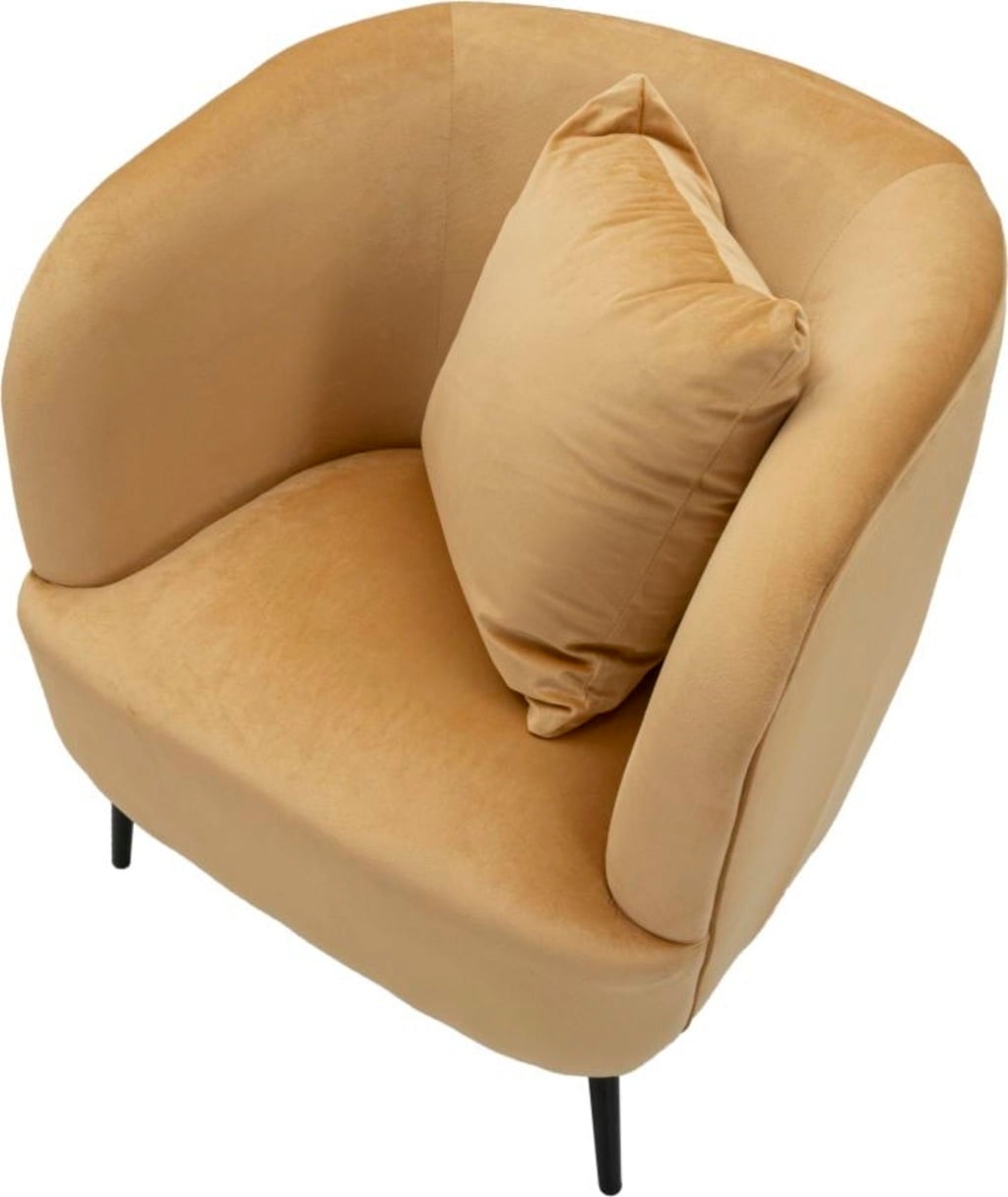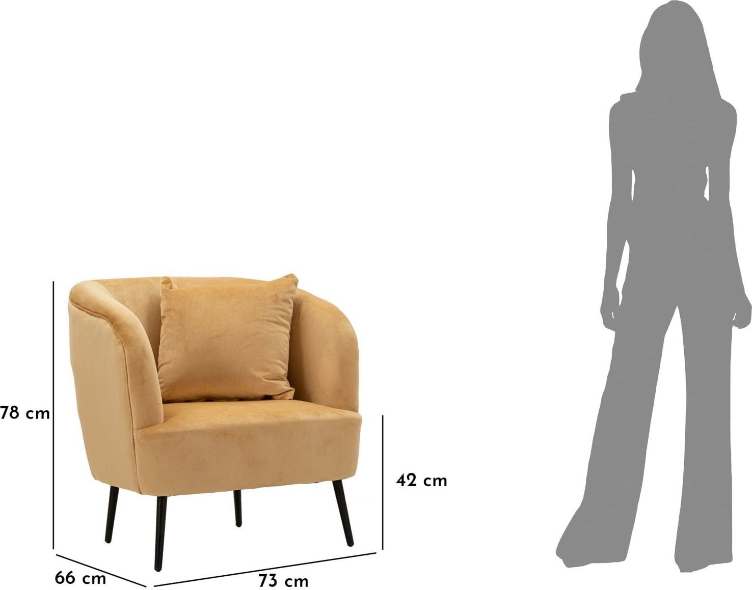 Verleihe deinem Raum einen unwiderstehlichen Hauch von modernem Luxus und höchstem Komfort mit diesem eleganten Sessel. Der breite, einladende Sessel besticht durch seinen weichen, samtigen Bezug in einem warmen Ocker-Ton, der deiner Einrichtung sofort eine gemütliche und zugleich gehobene Atmosphäre schenkt.