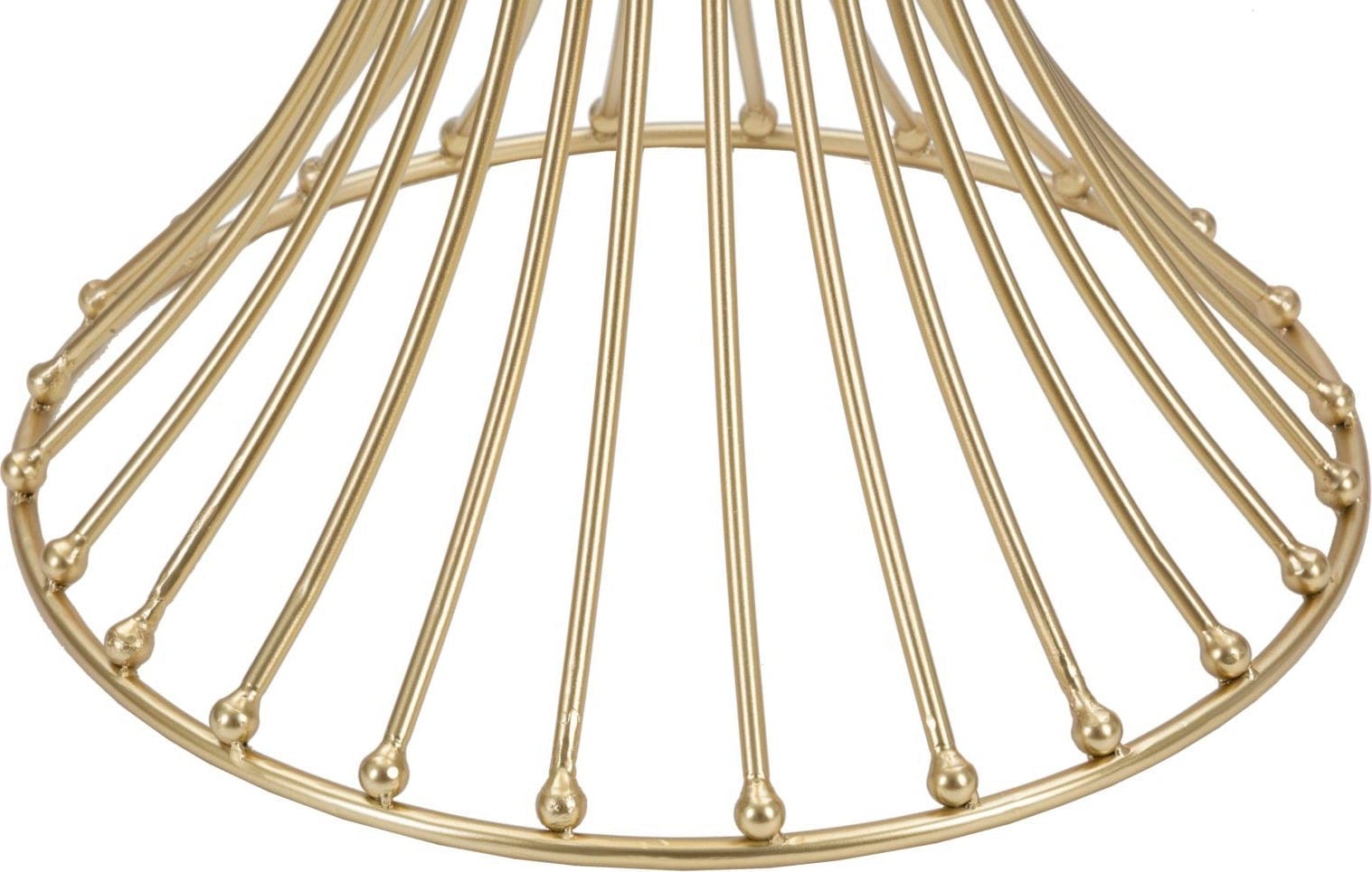 Das Gestell wird aus zahlreichen vertikalen Metallstreben gebildet, die sich in der Mitte elegant verjüngen und an den Enden mit kleinen, glänzenden Kugeln verziert sind. Gekrönt wird das Design durch eine Tischplatte aus hochwertigem Rauchglas, die dem Objekt eine moderne Tiefe verleiht und perfekt mit dem warmen Goldton harmoniert. Ob als extravaganter Beistelltisch oder als zentraler Blickfang – der Centur bringt puren Glamour in dein Zuhause.