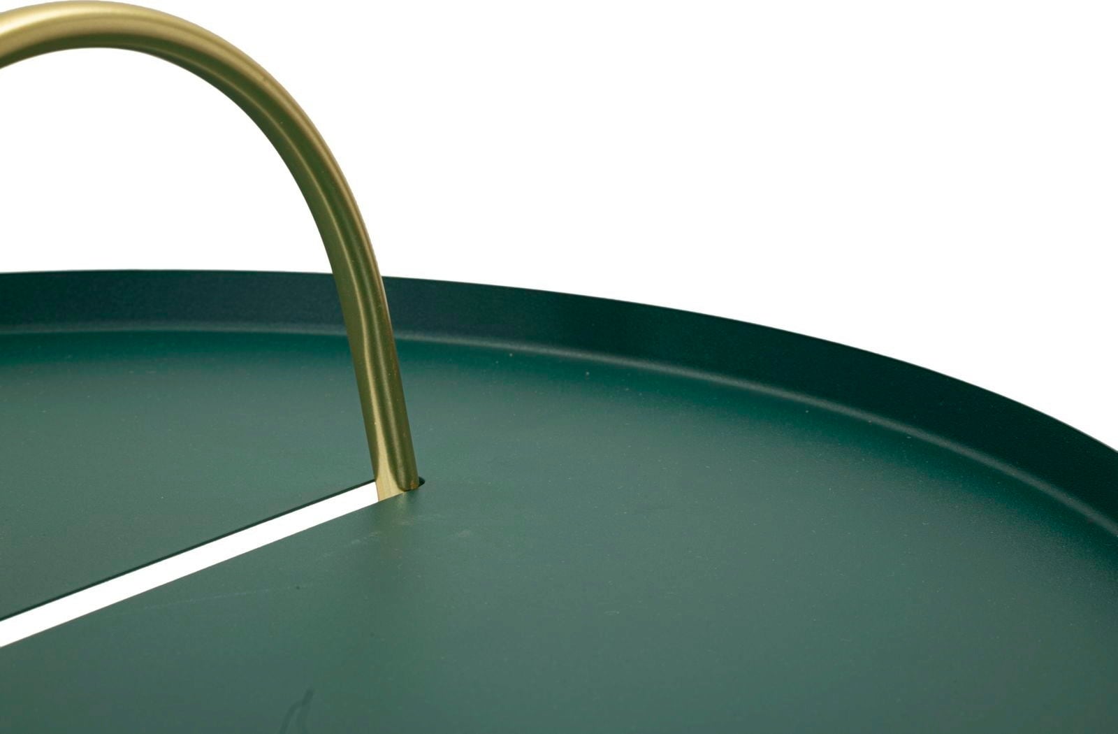 Verleihe deinem Wohnzimmer, Schlafzimmer oder Flur sofort einen Hauch von Raffinesse und Modernität mit diesem eleganten Couch- bzw. Beistelltisch. Die dunkelgrüne, glatte Tischplatte harmoniert perfekt mit den filigranen, goldenen Beinen und sorgt für einen luxuriösen Look. Dieses Zusammenspiel von Farbe und Metall schafft einen wunderschönen, modernen Akzent.