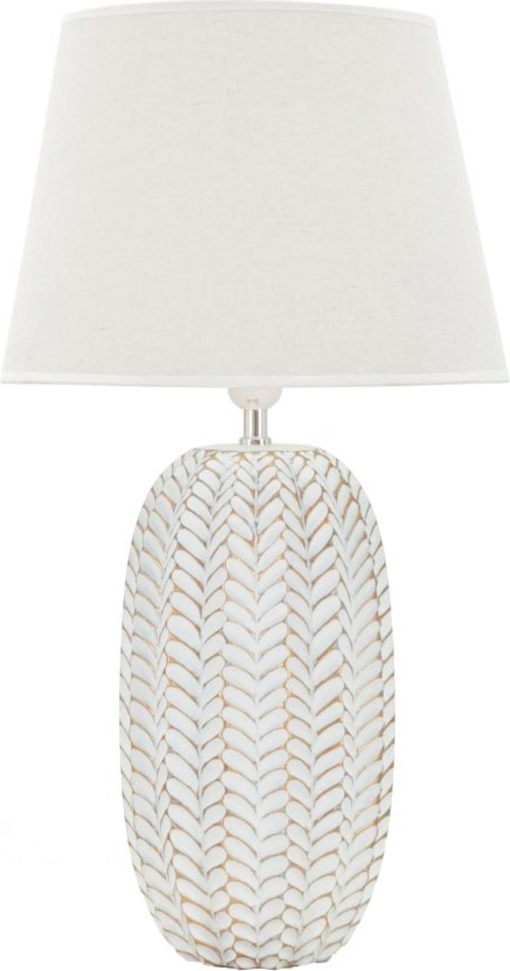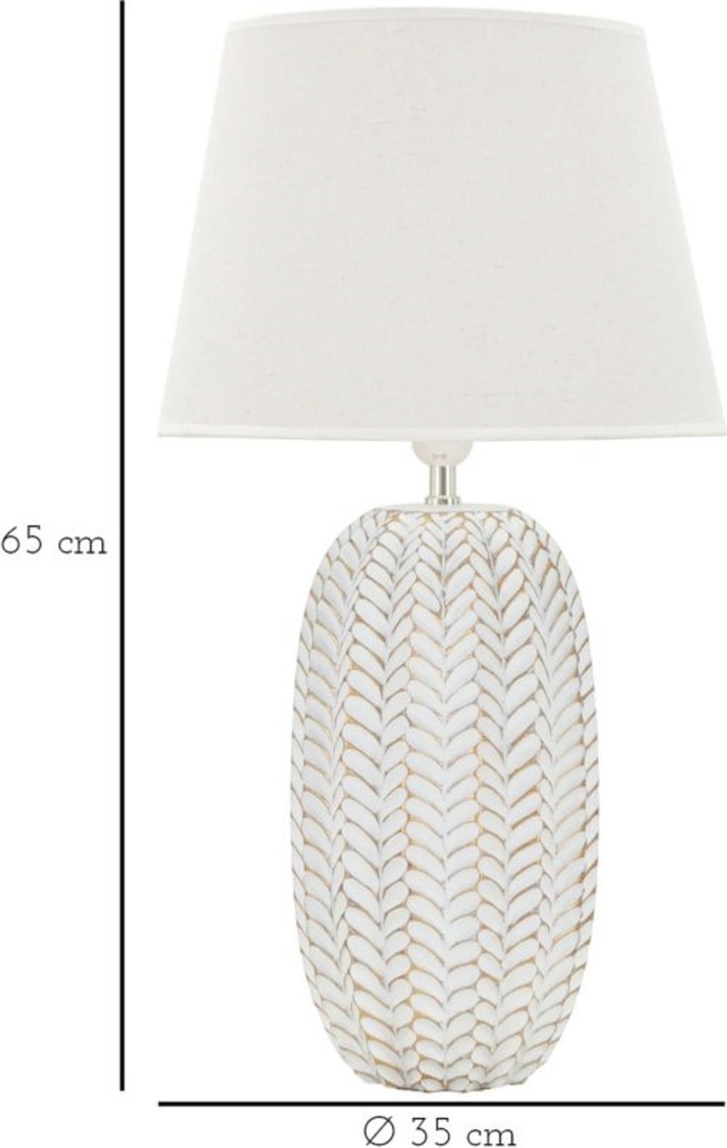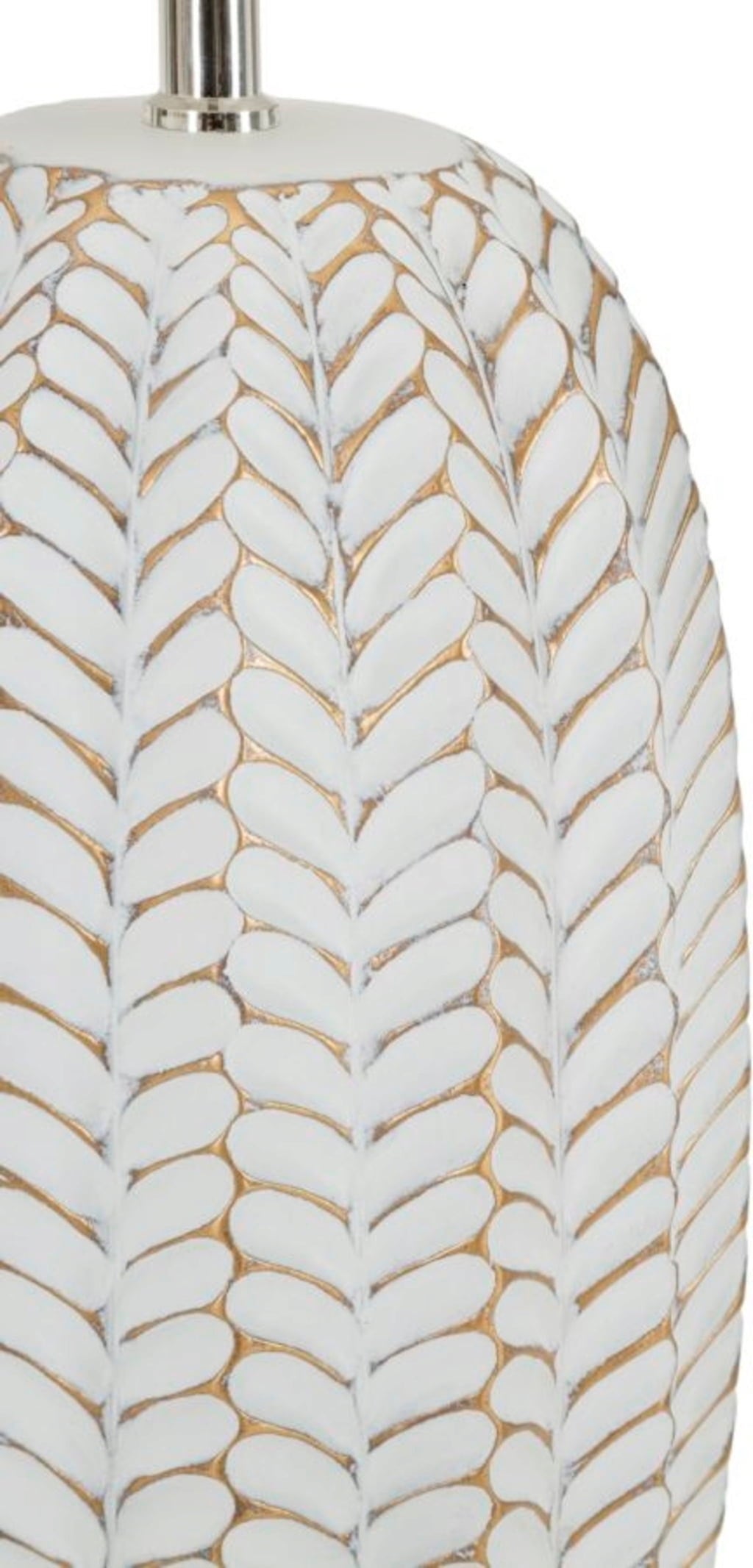 Verleihe deinem Raum einen Hauch von zeitloser, natürlicher Eleganz mit dieser bezaubernden Tischleuchte. Ihre Basis, gefertigt aus robustem Kunstharz, besticht durch ein wunderschönes, fein ausgearbeitetes florales Relief, das deinem Interieur sofort eine romantische Textur und Tiefe schenkt.