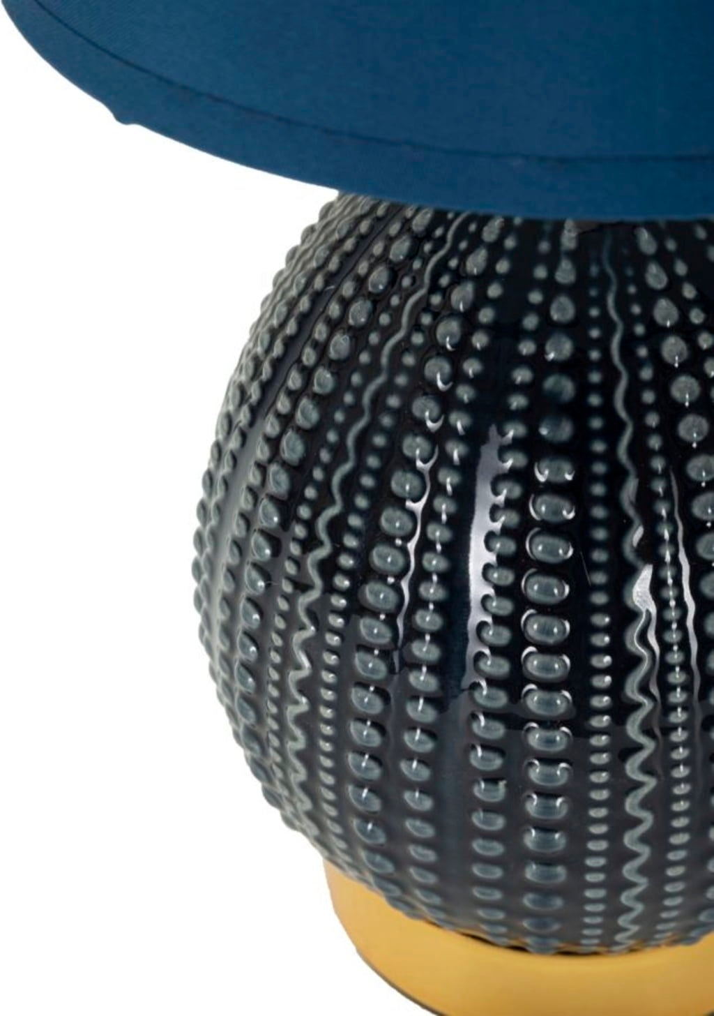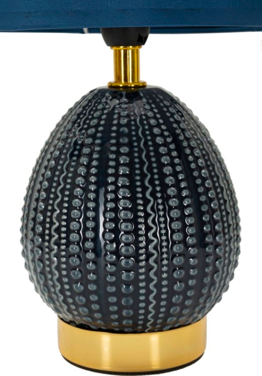 Verleihe deinem Zimmer mit dieser eleganten Nachttischlampe im Handumdrehen modernen Stil und subtile Helligkeit. Der Lampenfuß in hellem, zeitlosem Blau besticht durch eine einzigartige, feine Reliefverzierung aus unregelmäßigen Punkten. Diese unkonventionelle Textur sorgt für einen modernen, spürbaren Akzent, der dennoch Ruhe ausstrahlt.