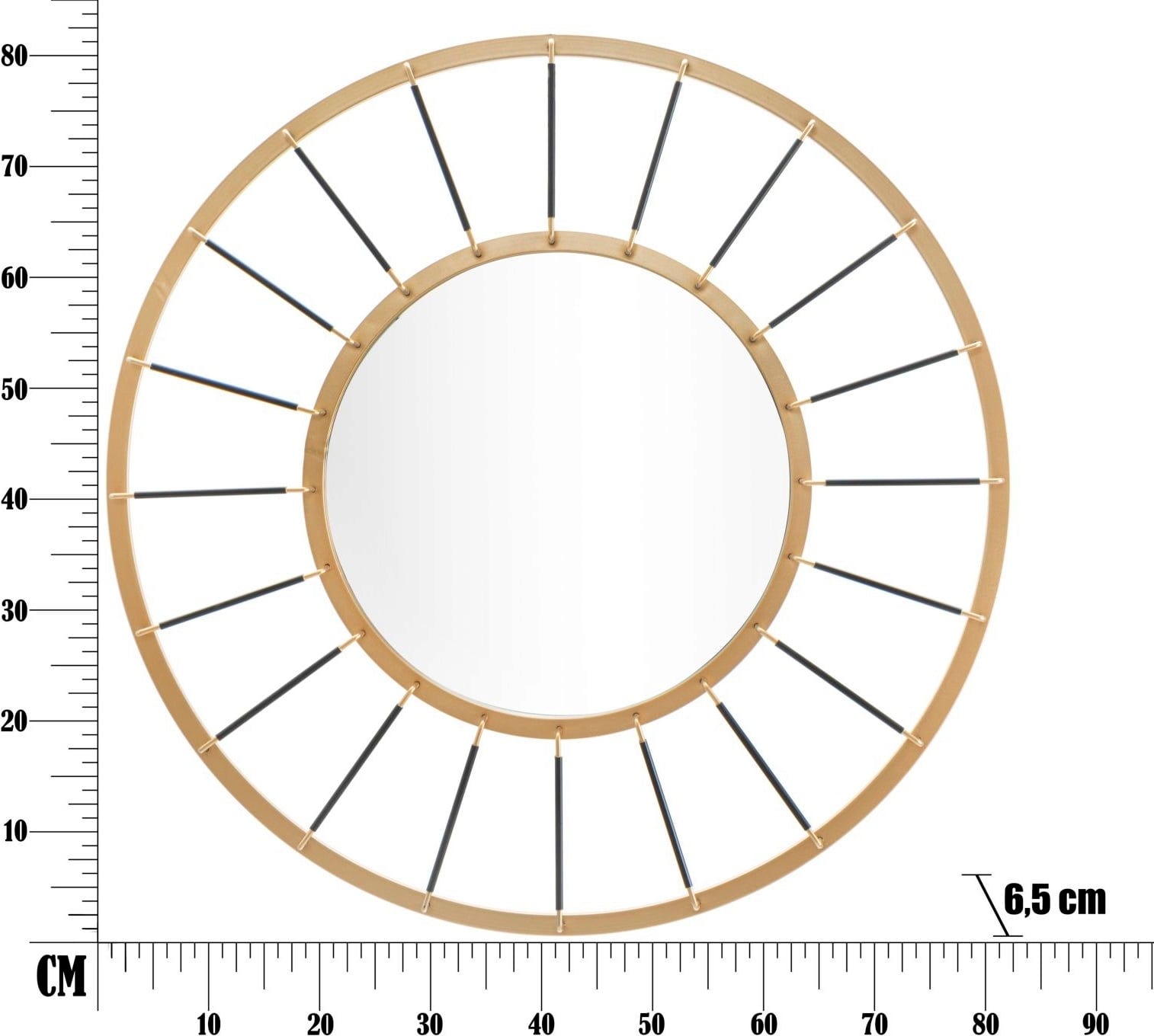 Maße: Ø 81 x 6,5 cm (Spiegel Ø 41,5 cm)