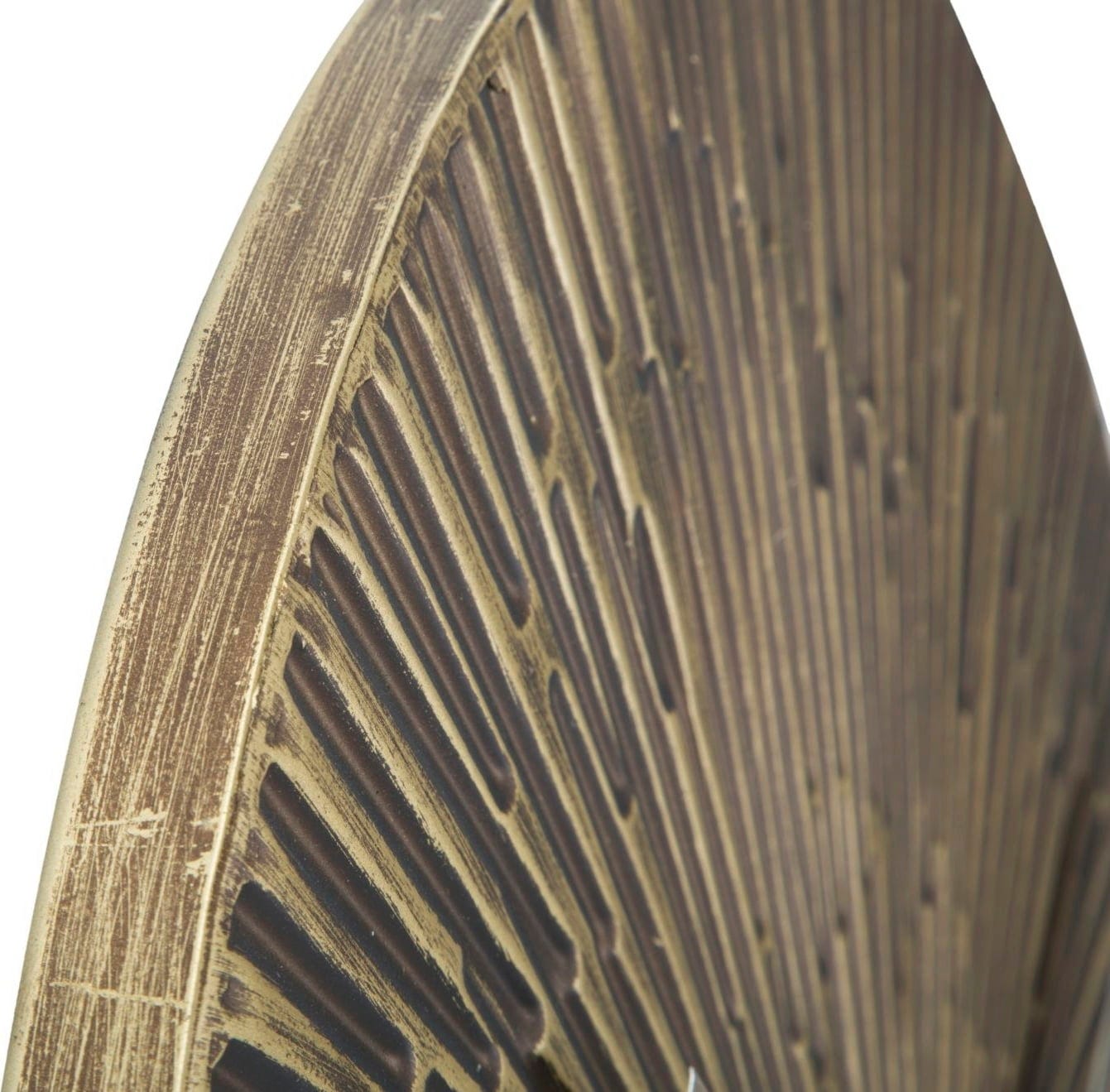 Setze ein skulpturales Statement an deiner Wand mit der Wanduhr Opis von Mauro Ferretti. Diese runde Design-Uhr aus bronzefarbenem Metall besticht durch ihre außergewöhnliche Oberflächenstruktur, die an stilisierte Sonnenstrahlen erinnert.