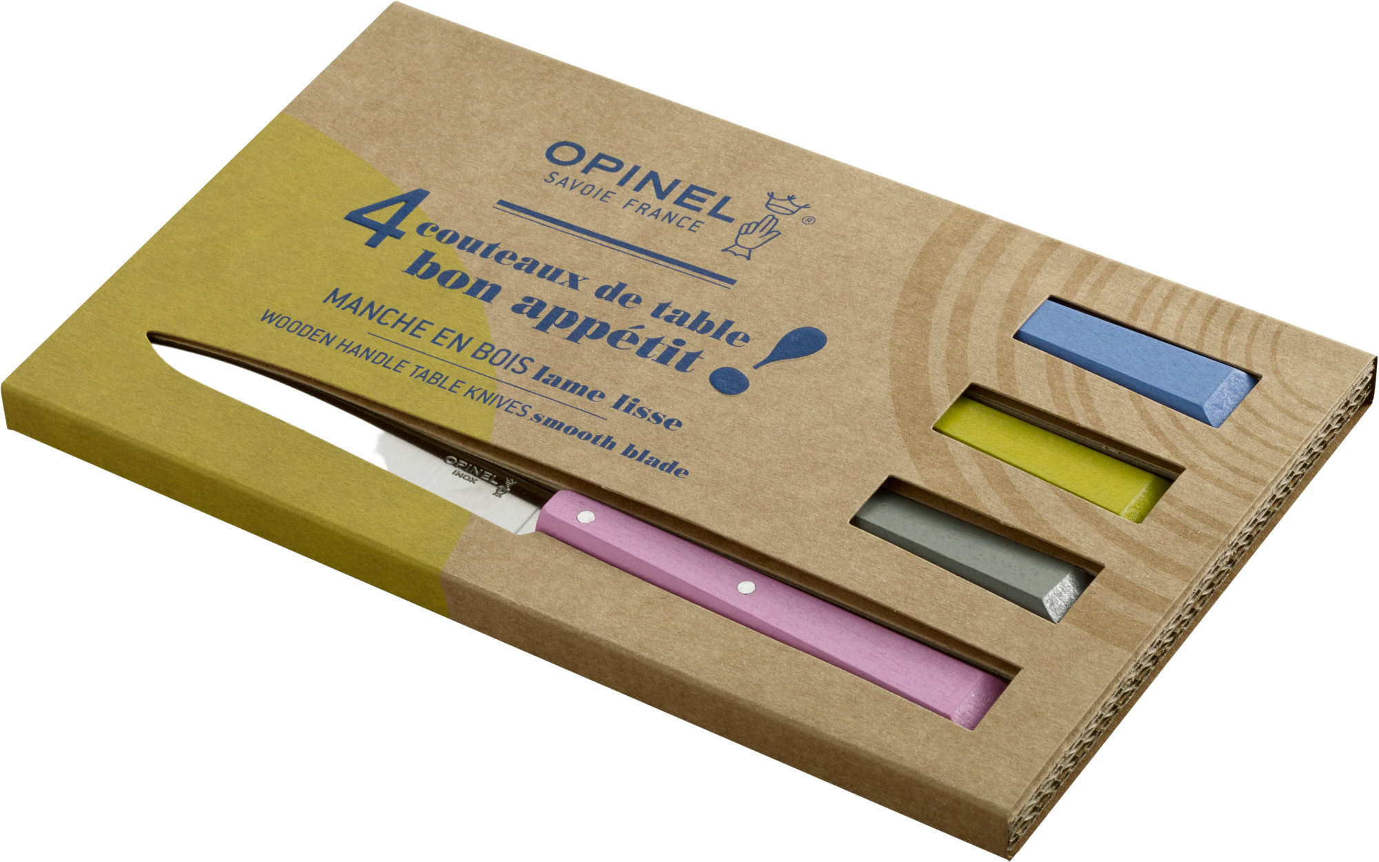 Dieses hochwertige Set beinhaltet vier Messer in unterschiedlichen, frischen Farben, die hübsche Akzente auf dem Esstisch setzen.