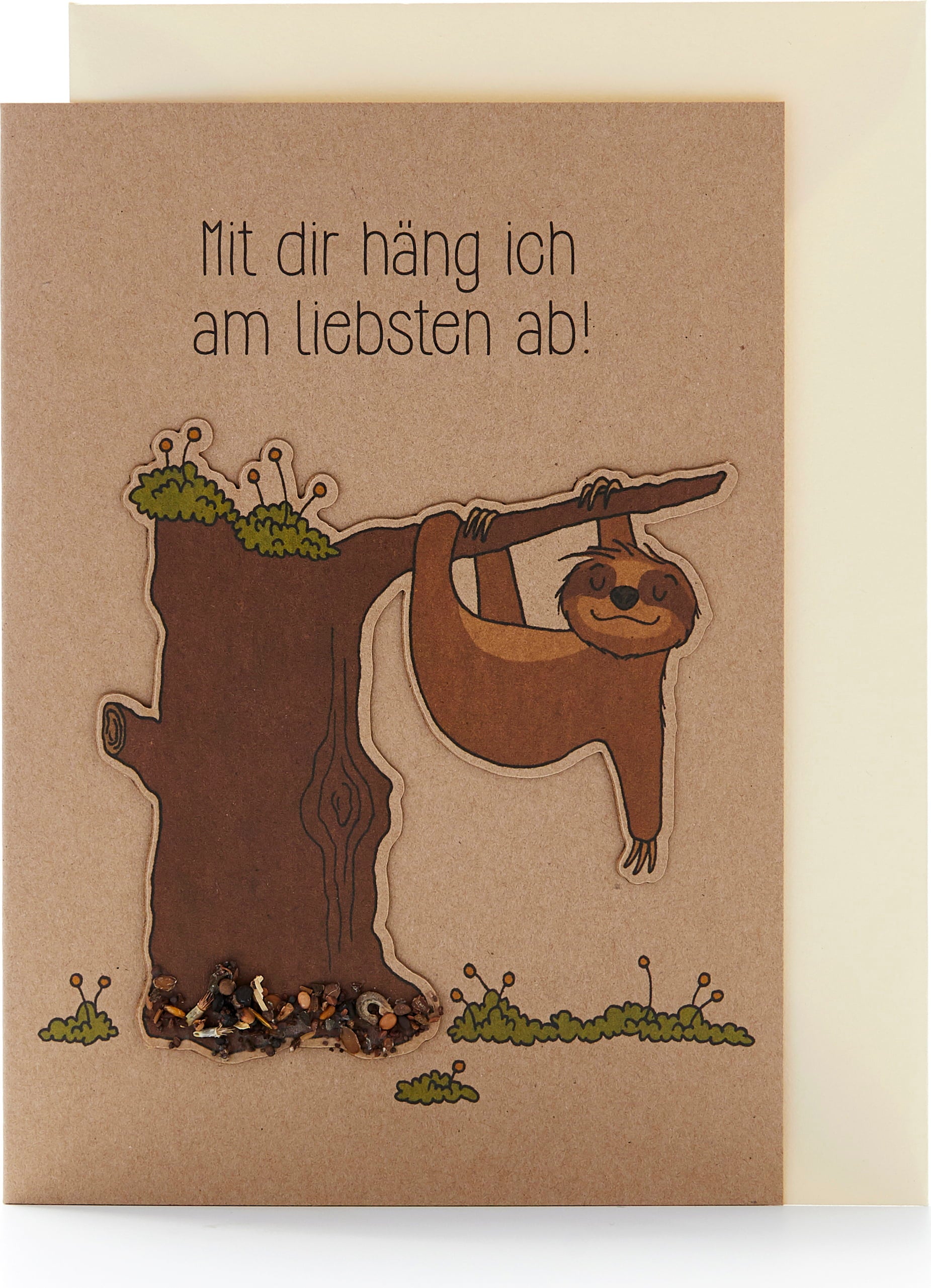 Wenn du einer lieben Person deutlich machen möchtest, dass du sie gerne hast und die gemeinsame Zeit etwas Kostbares für dich ist, dann hilft dir dieses süße Faultier bestimmt weiter. Die Grußkarte sorgt nicht nur für ein Schmunzeln und liebevolle Blicke, sondern überrascht außerdem mit wunderbaren Wildblumensamen.