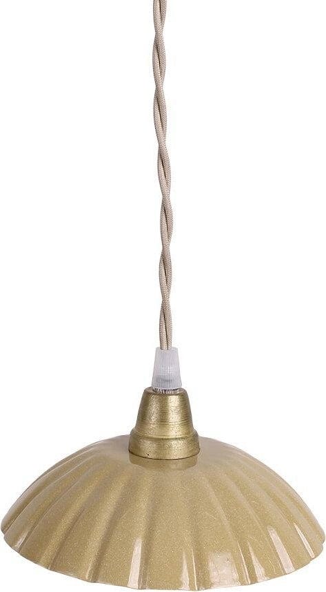 Diese Pendelleuchte im angesagten Vintage-Look sorgt für eine gemütliche Stimmung. Der gewellte Schirm aus handbemaltem Metall, die antik-goldenen Details sowie das beige Textilkabel tragen nicht unwesentlich zum nostalgischen Charme bei. Von der Größe her eignet sie sich vor allem zur Ausleuchtung von kleinen Essplätzen oder Nachttischen. Auch für die Kombination mit weiteren Leuchten eine hervorragende Wahl.