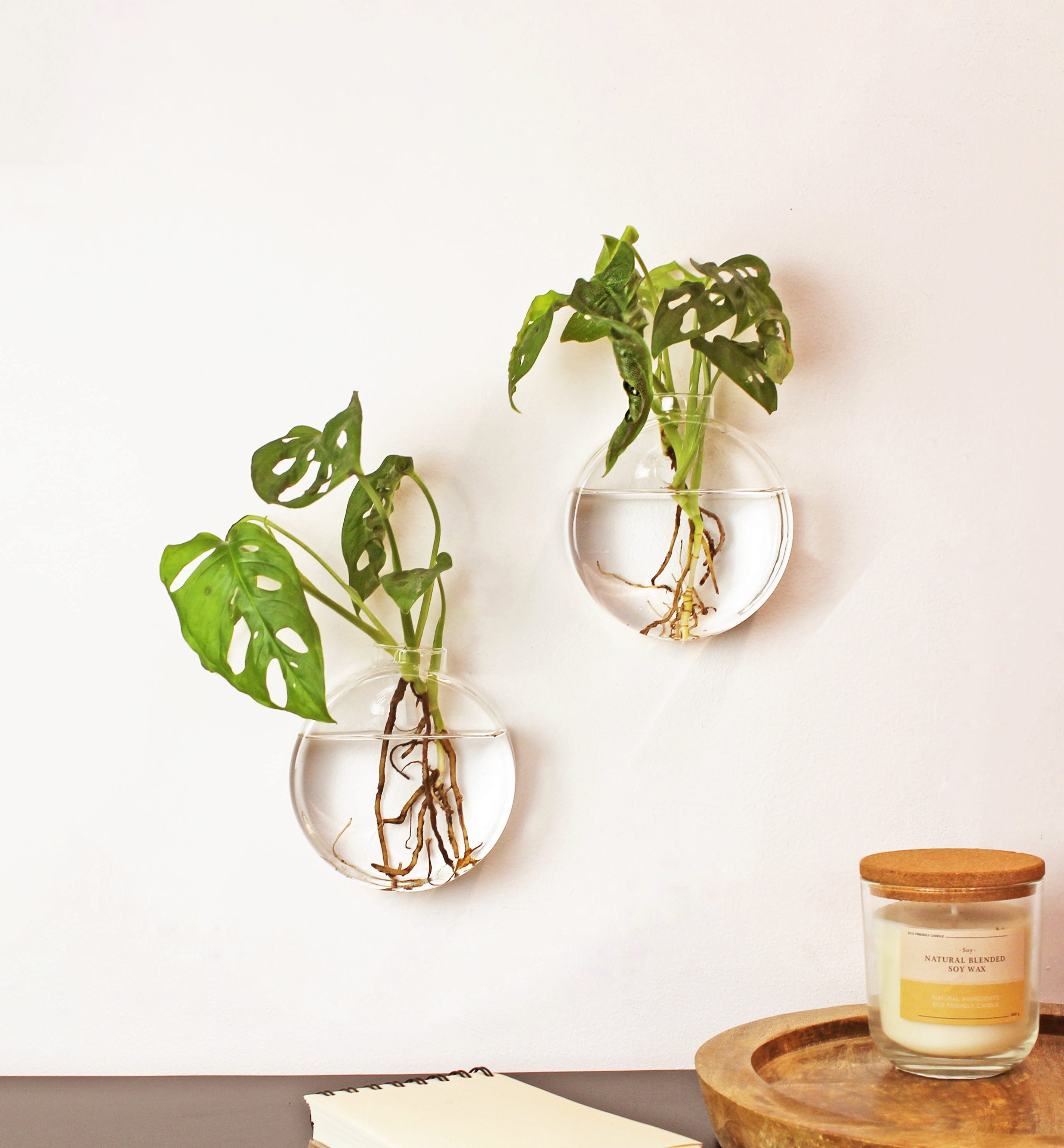 Verschönere deine Wände mit der Hydro-Wandvase Dahlia. Das Set ist perfekt für Wohnzimmer, Büro oder Flur und verwandelt deine Stecklinge in lebendige Kunstwerke.