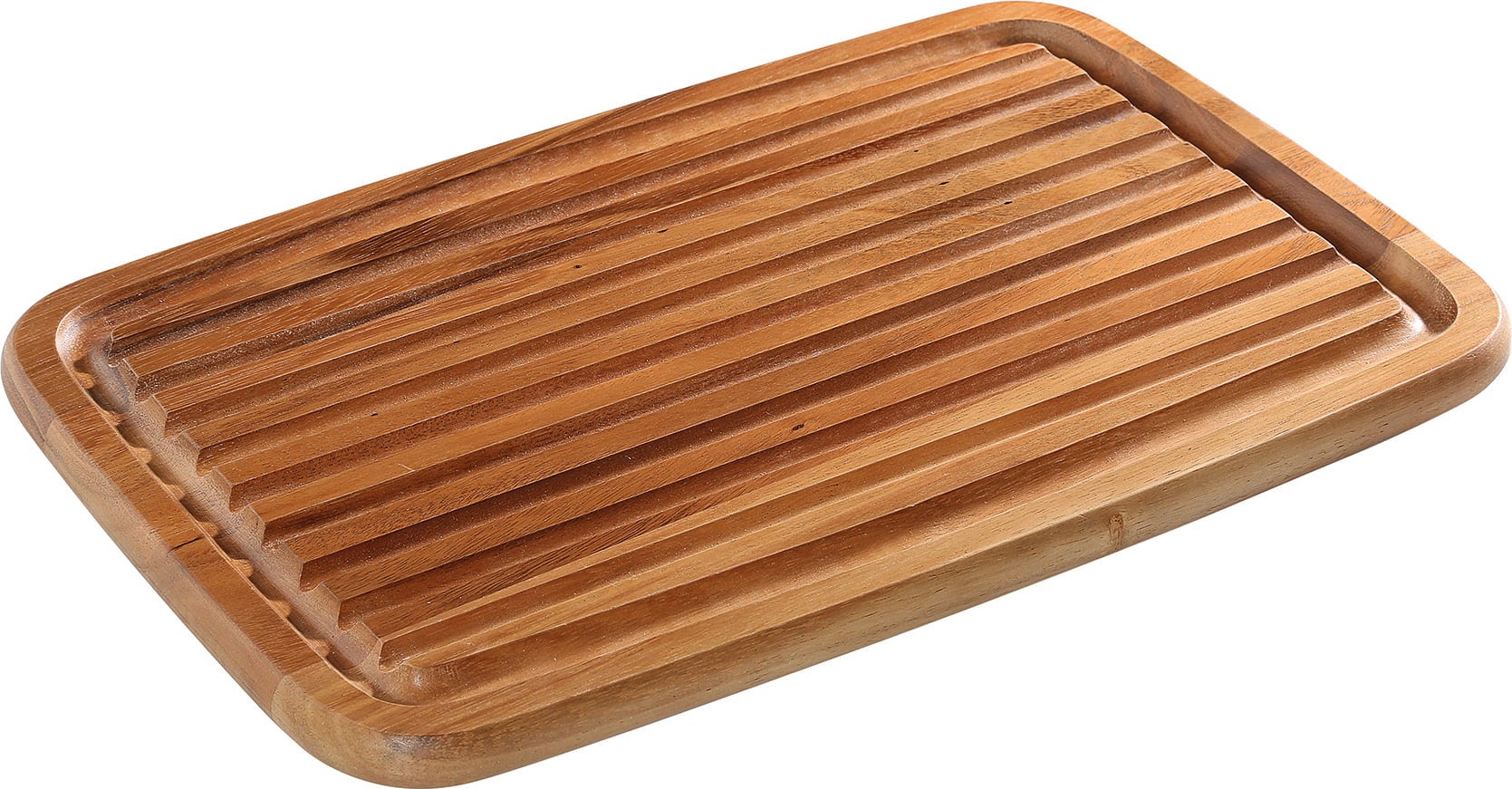 Das Brotschneidbrett aus Akazienholz von Zassenhaus sorgt für ordentliche Scheiben und weniger Chaos auf der Arbeitsfläche. Die cleveren Krümelrillen fangen die kleinen Brotstücke auf, während das robuste Holz selbst bei häufigem Gebrauch langlebig bleibt. Ideal für Baguette, Brotlaibe oder Ciabatta – so macht Schneiden Freude und das Brett bleibt lange schön.